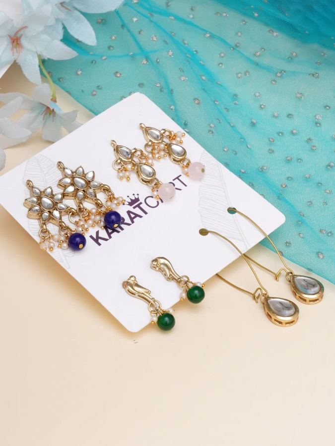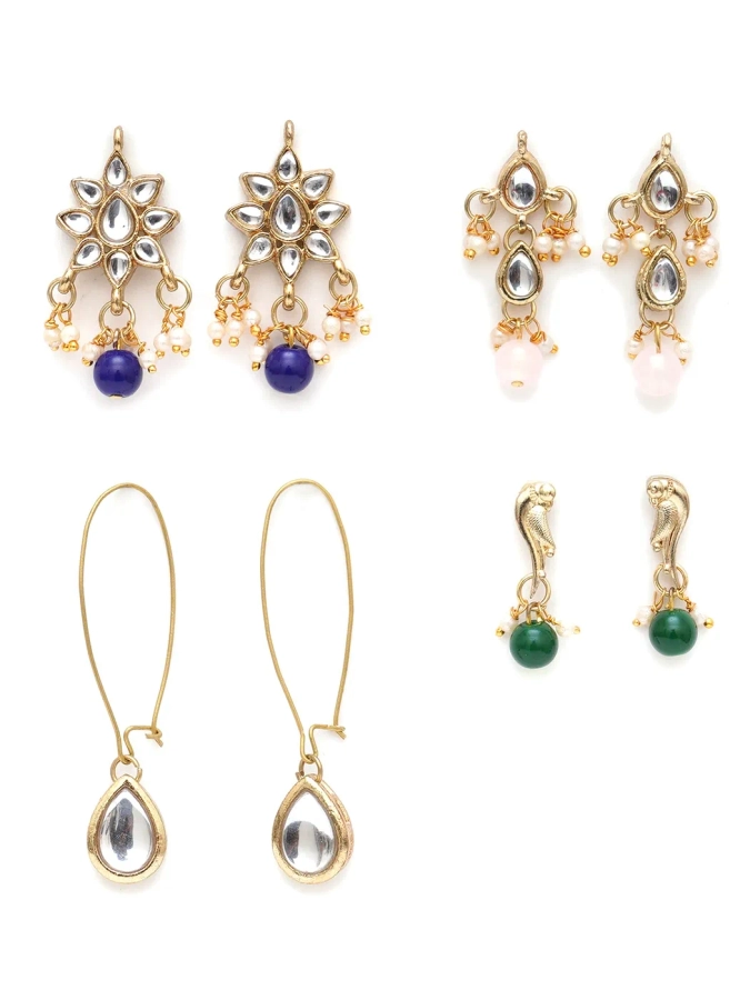 - Karatcart Set of 4 Handcrafted Kundan Earrings Combo for Women. Our products are designed with high-quality Kundan Stones and these products are enhanced with plating that are skin-friendly & with love to reach your heart.