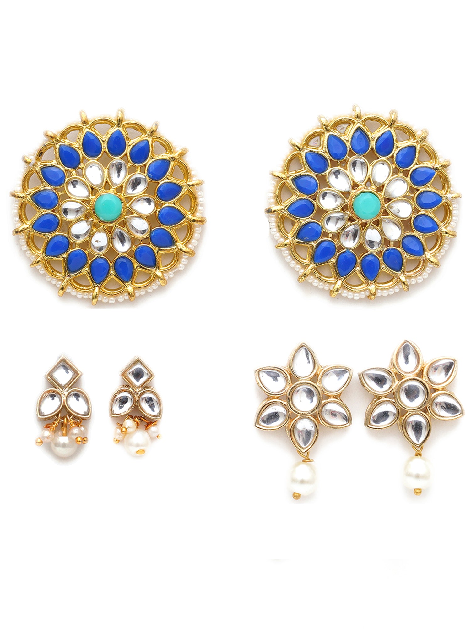 • Karatcart Set of 3 Handcrafted Kundan Earrings Combo for Women. Our products are designed with high-quality Kundan Stones and these products are enhanced with plating that are skin-friendly & with love to reach your heart.