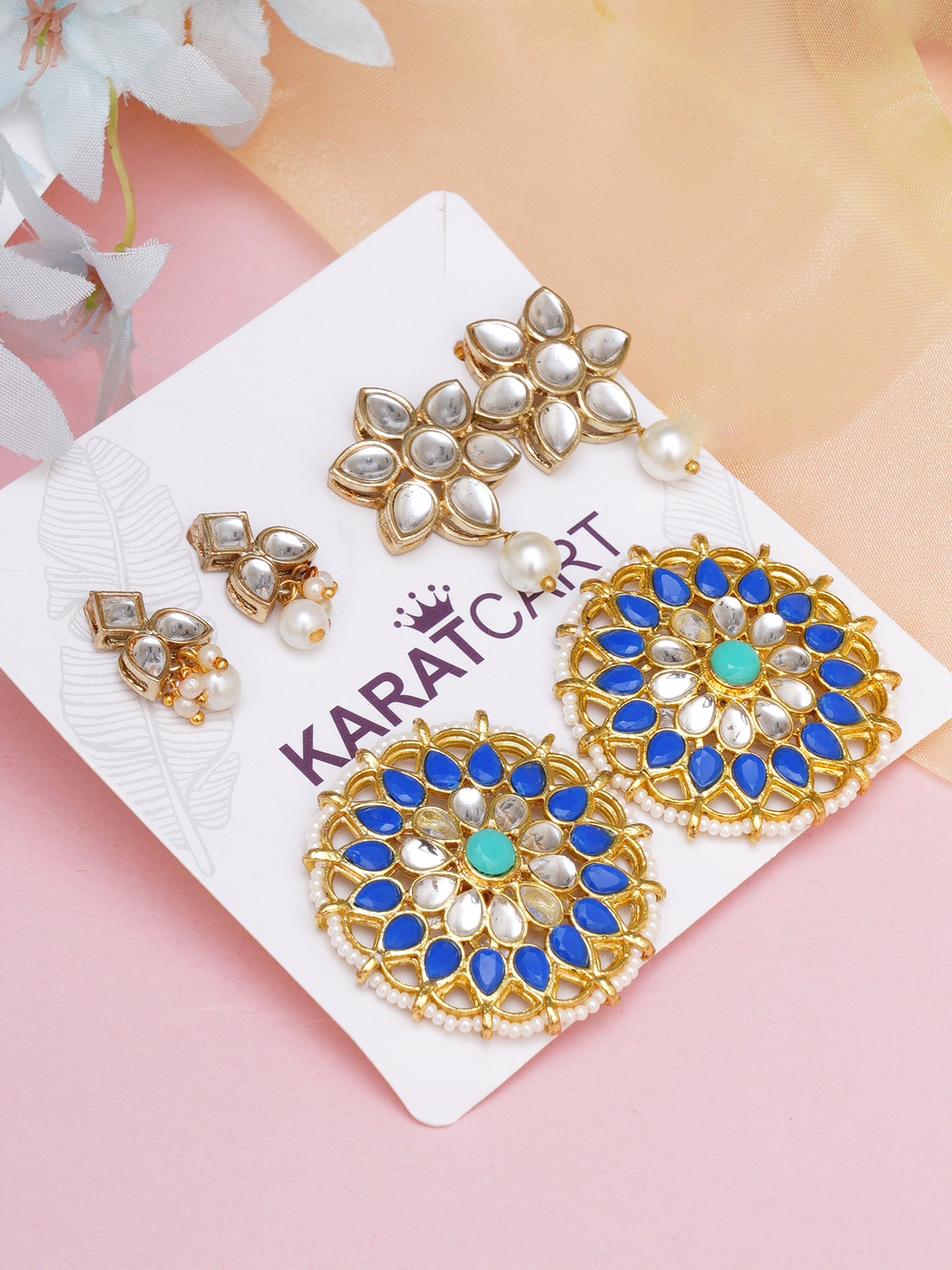 Karatcart Set of 3 Handcrafted Kundan Earrings Combo for Women