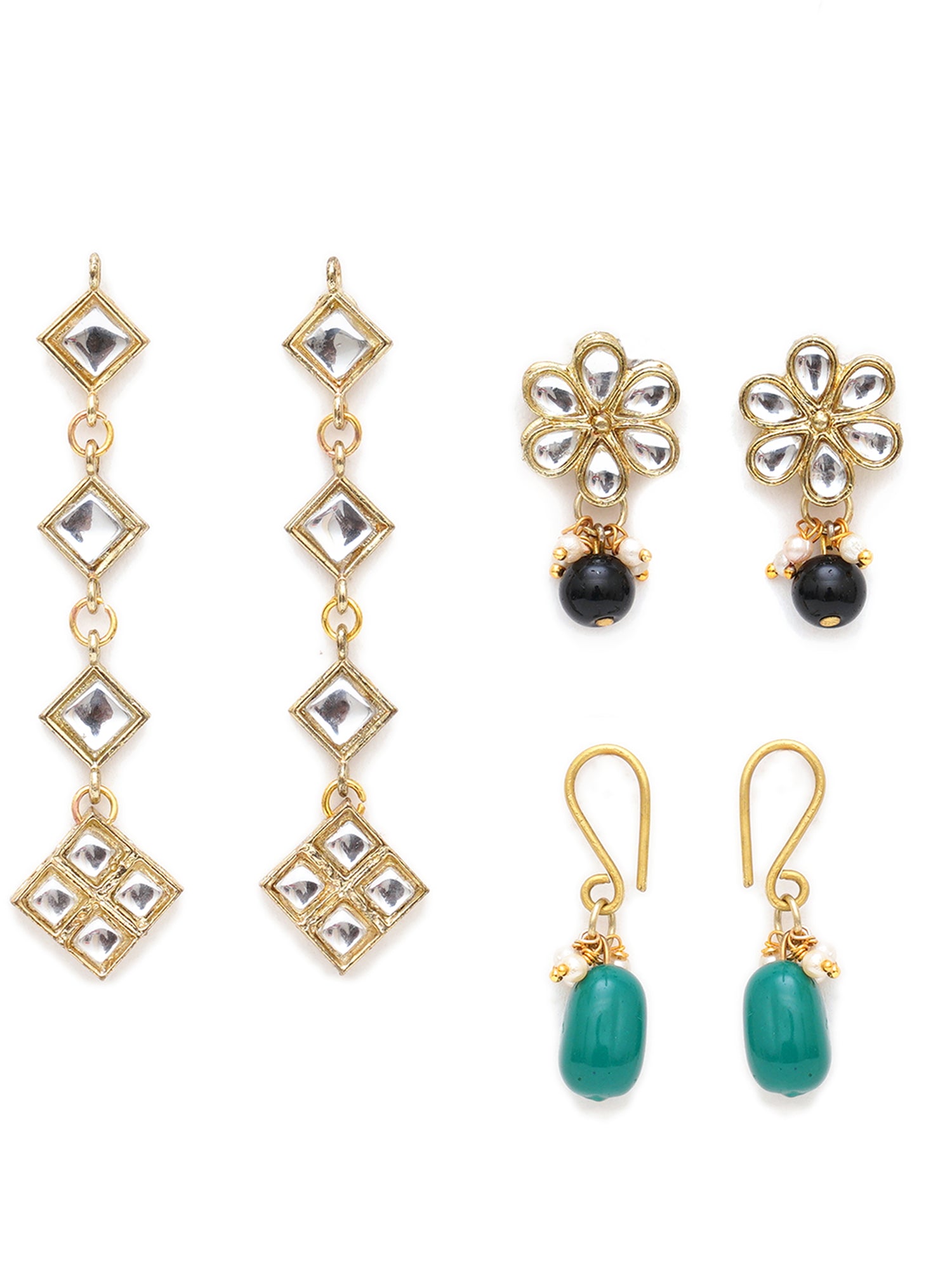 - Karatcart Set of 3 Handcrafted Kundan Earrings Combo for Women. Our products are designed with high-quality Kundan Stones and these products are enhanced with plating that are skin-friendly & with love to reach your heart.