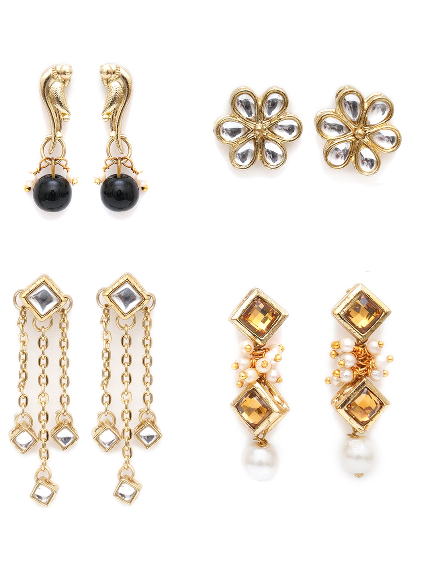 • Karatcart Set of 4 Handcrafted Kundan Earrings Combo for Women. Our products are designed with high-quality Kundan Stones and these products are enhanced with plating that are skin-friendly & with love to reach your heart.