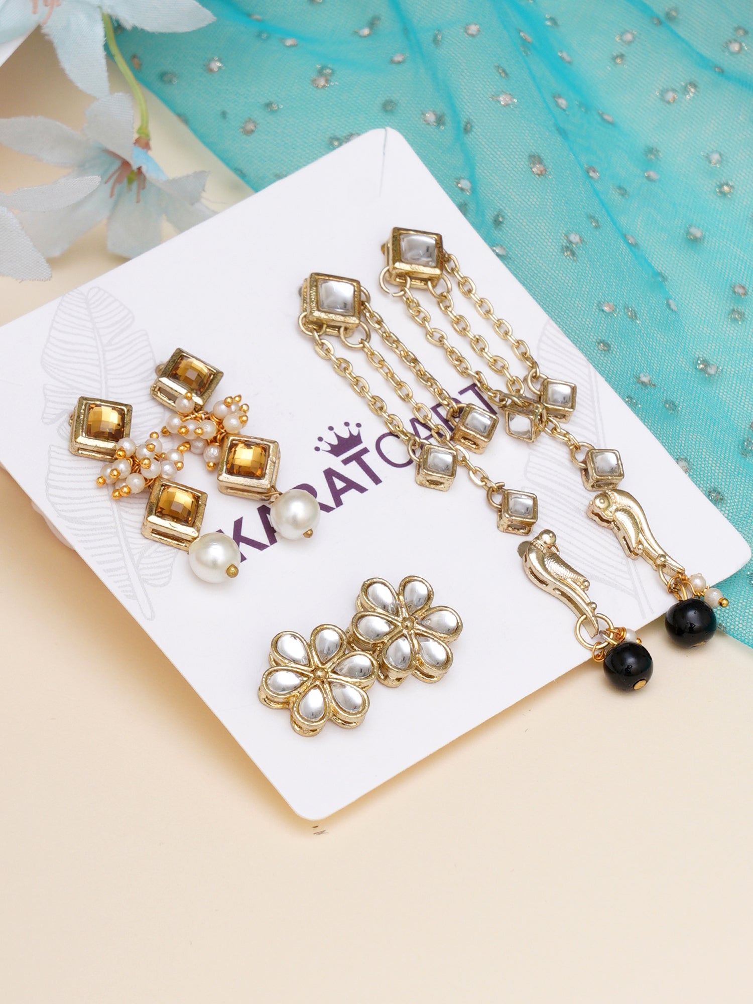 Karatcart Set of 4 Handcrafted Kundan Earrings Combo for Women