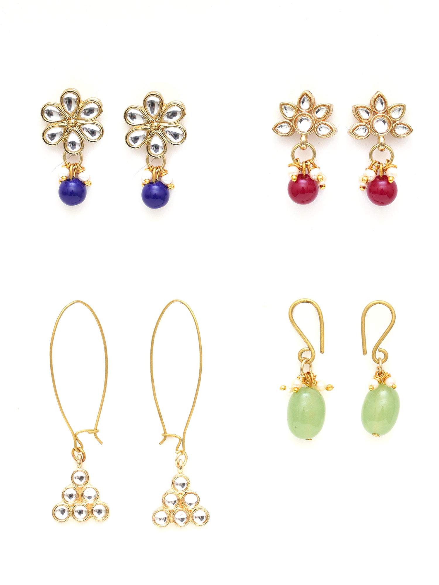 - Karatcart Set of 4 Handcrafted Kundan Earrings Combo for Women. Our products are designed with high-quality Kundan Stones and these products are enhanced with plating that are skin-friendly & with love to reach your heart.