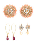 Karatcart Set of 3 Handcrafted Kundan Earrings Combo for Women