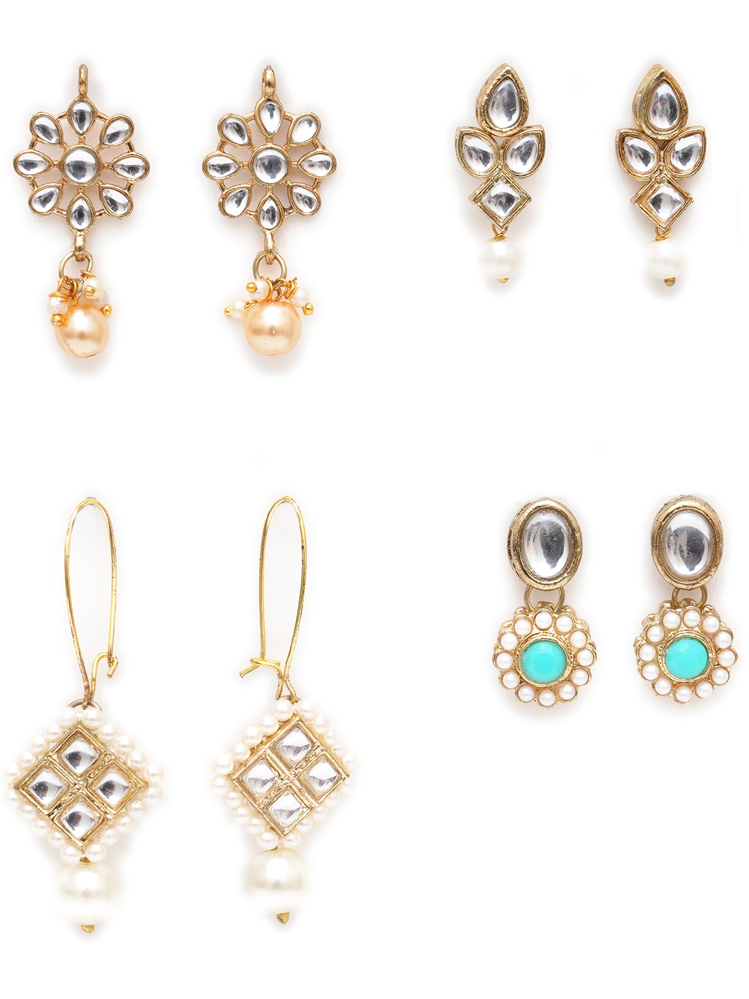 • Karatcart Set of 4 Handcrafted Kundan Earrings Combo for Women. Our products are designed with high-quality Kundan Stones and these products are enhanced with plating that are skin-friendly & with love to reach your heart.