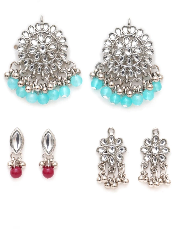 Karatcart Set of 3 Handcrafted Kundan Earrings Combo for Women