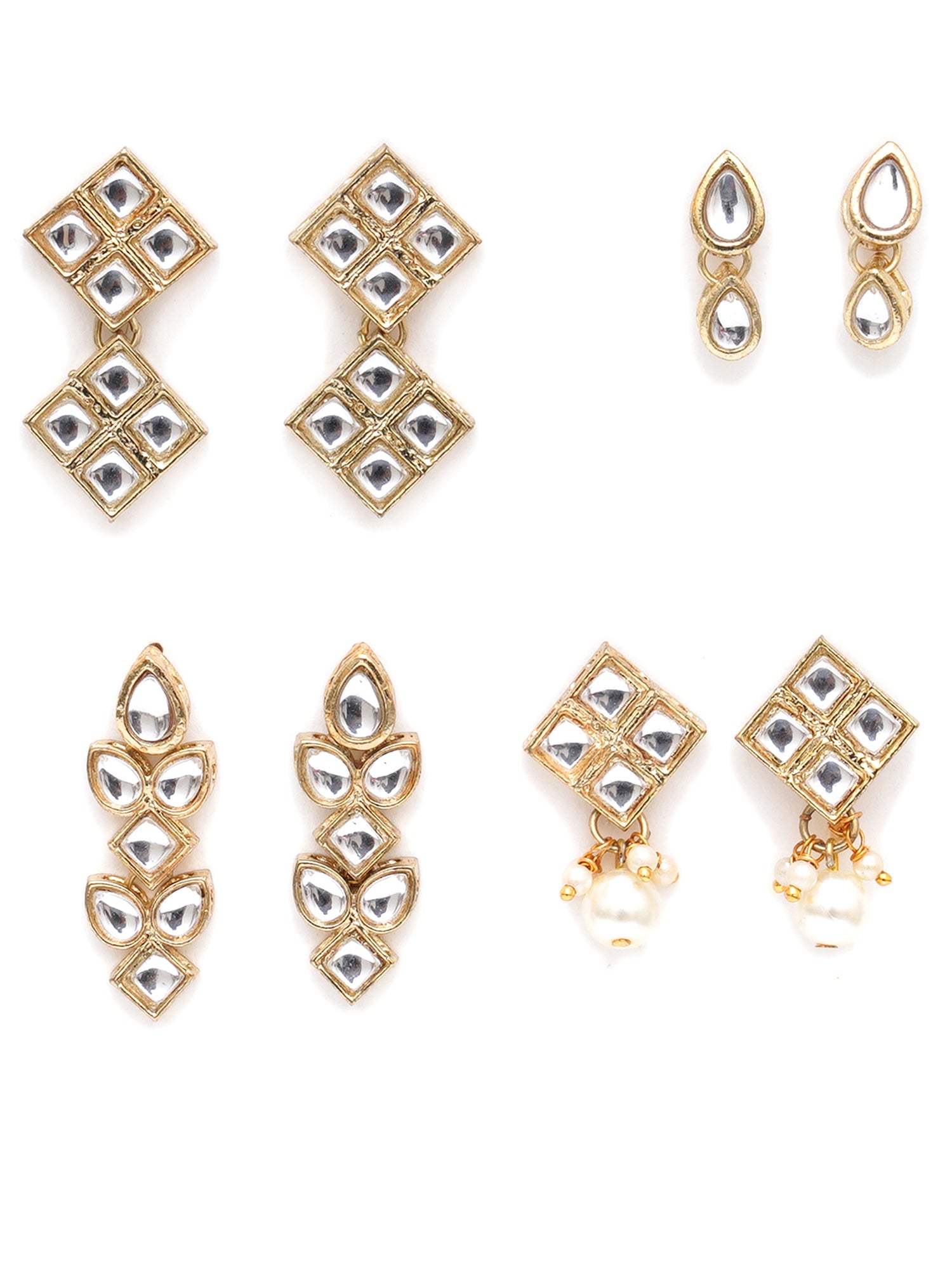 • Karatcart Set of 4 Handcrafted Kundan Earrings Combo for Women. Our products are designed with high-quality Kundan Stones and these products are enhanced with plating that are skin-friendly & with love to reach your heart.