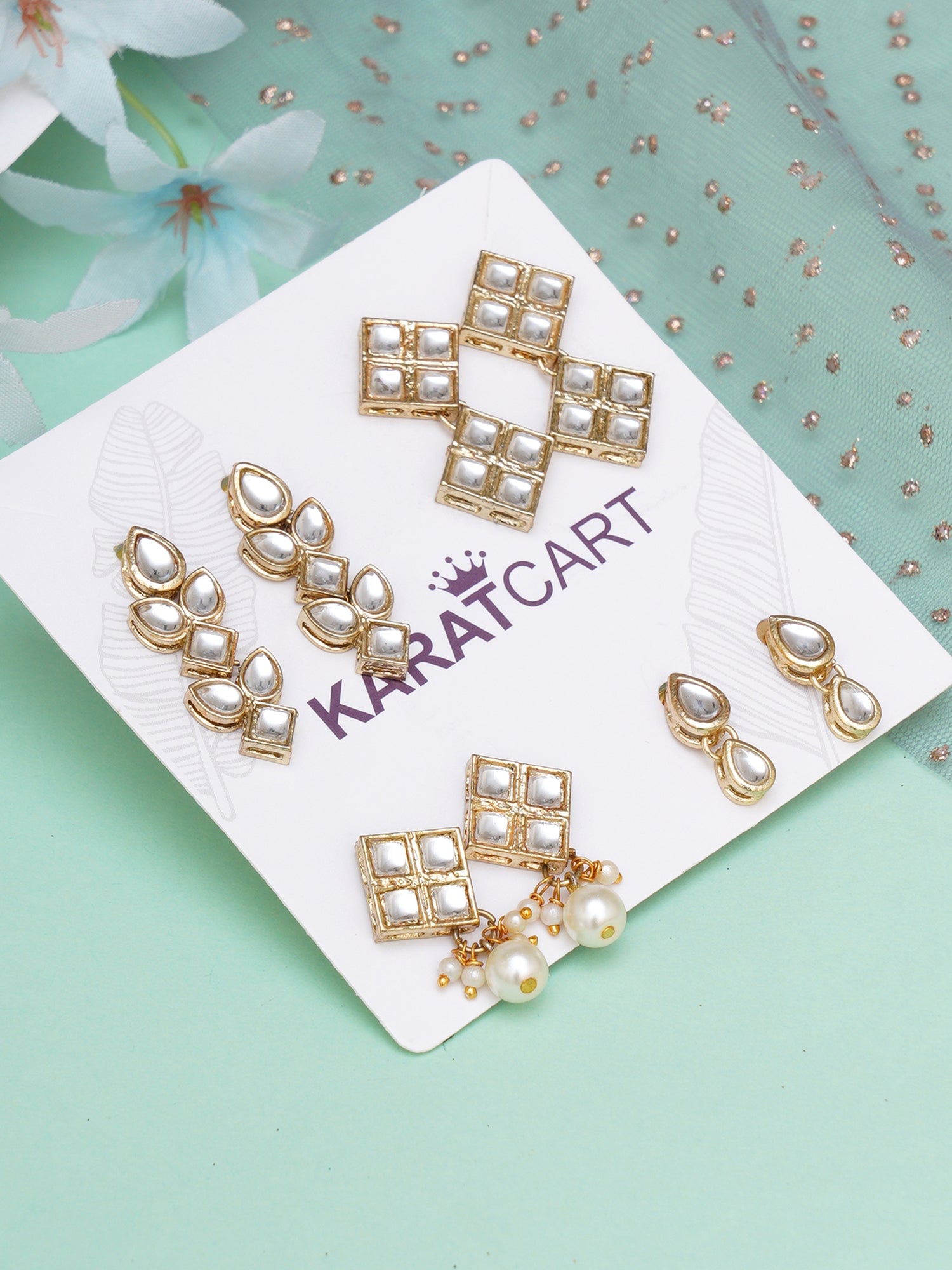 Karatcart Set of 4 Handcrafted Kundan Earrings Combo for Women