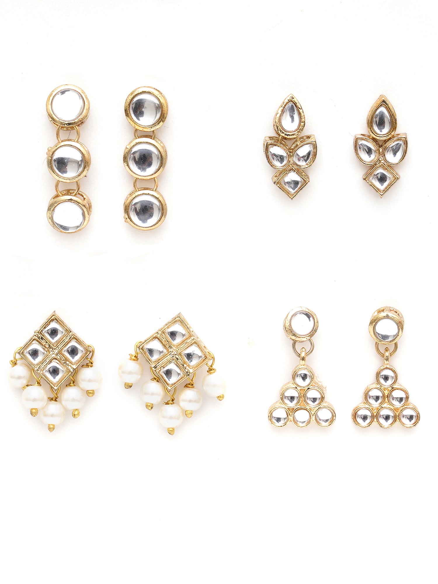 • Karatcart Set of 4 Handcrafted Kundan Earrings Combo for Women. Our products are designed with high-quality Kundan Stones and these products are enhanced with plating that are skin-friendly & with love to reach your heart.