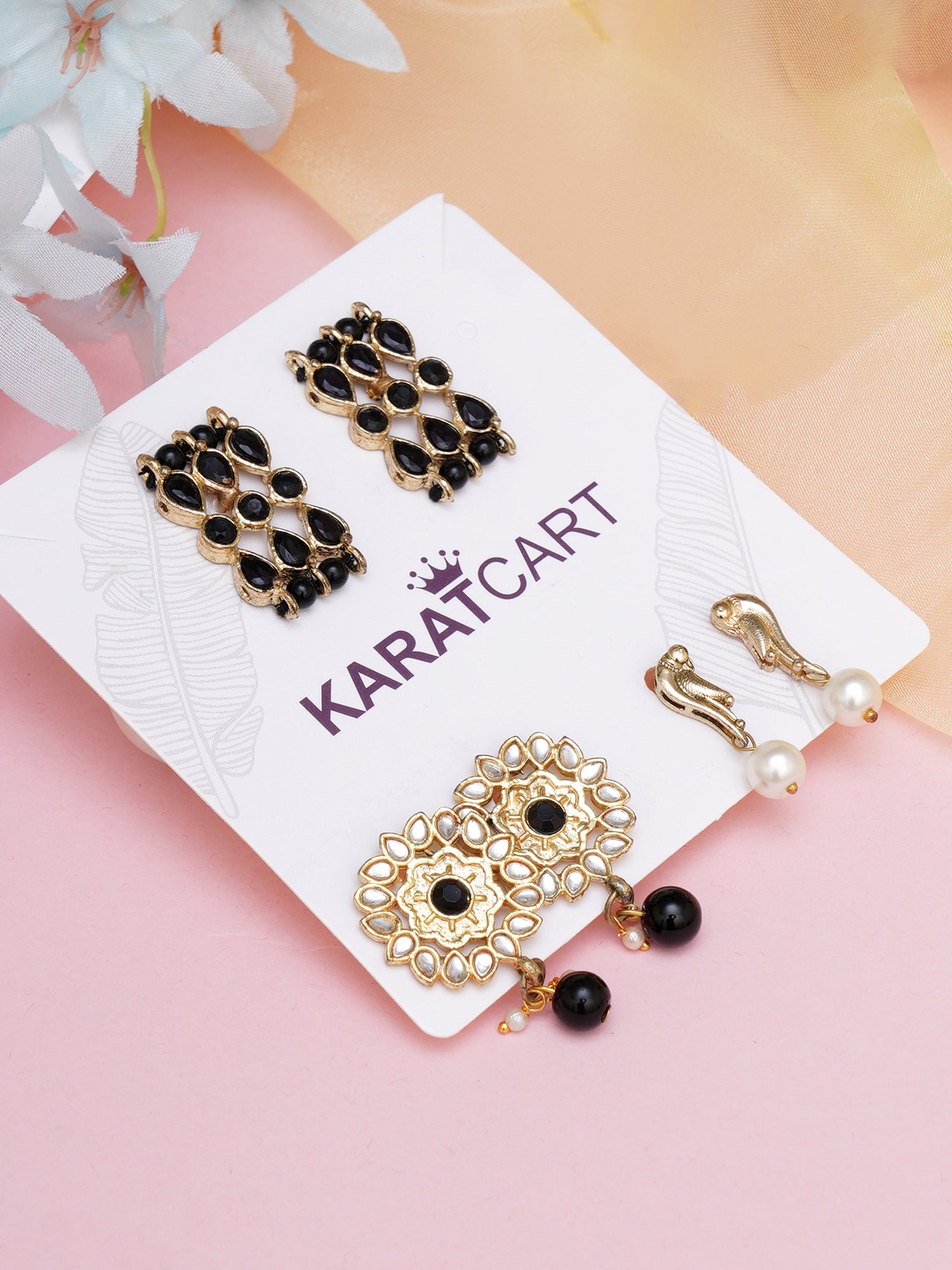 Karatcart Set of 3 Handcrafted Kundan Earrings Combo for Women