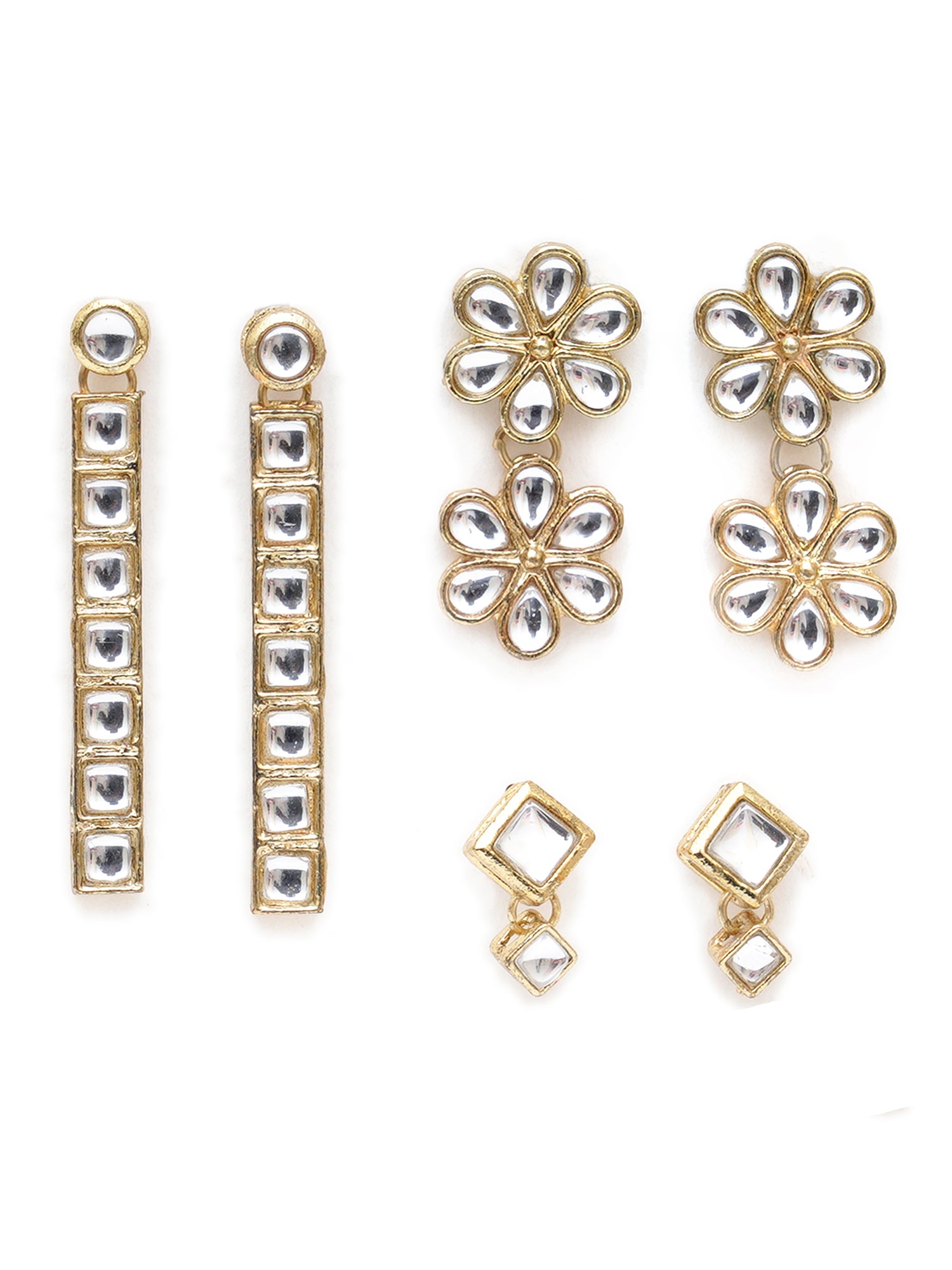 • Karatcart Set of 3 Handcrafted Kundan Earrings Combo for Women. Our products are designed with high-quality Kundan Stones and these products are enhanced with plating that are skin-friendly & with love to reach your heart.
