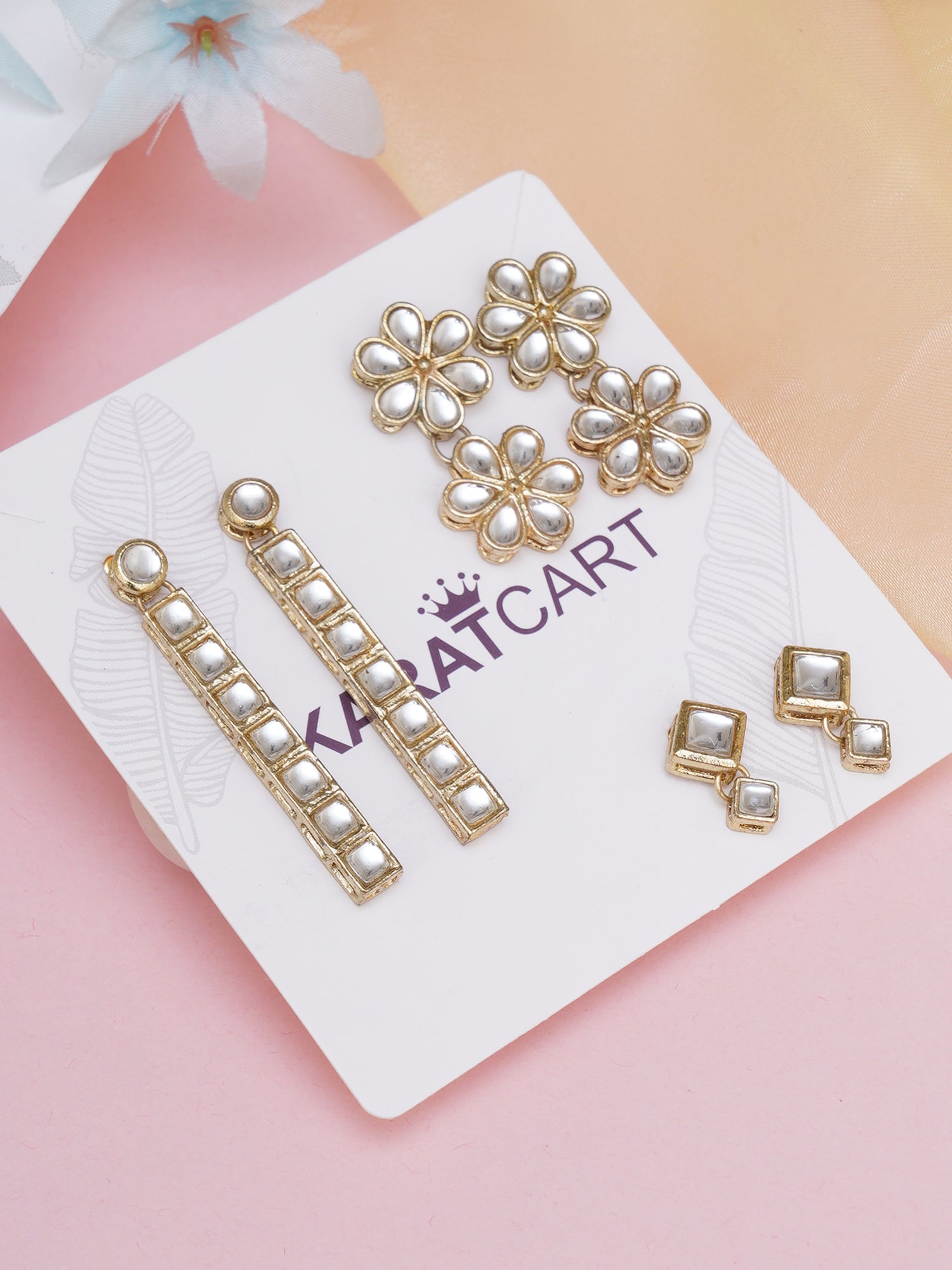 Karatcart Set of 3 Handcrafted Kundan Earrings Combo for Women