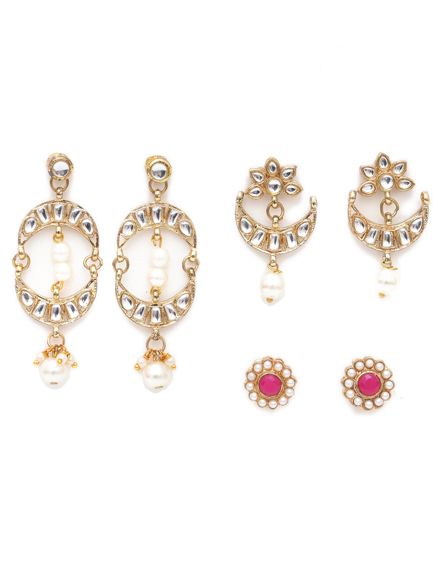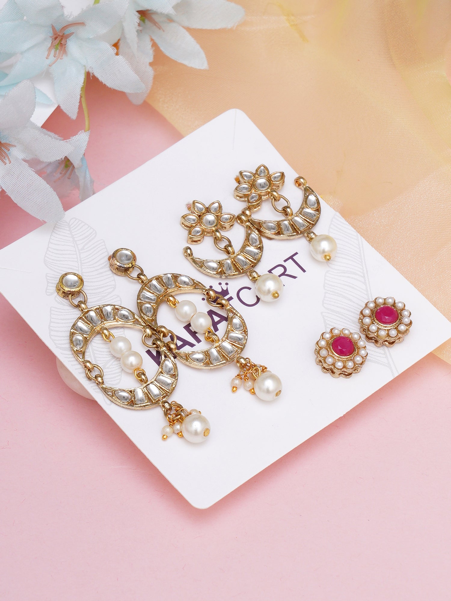 Karatcart Set of 3 Handcrafted Kundan Earrings Combo for Women
