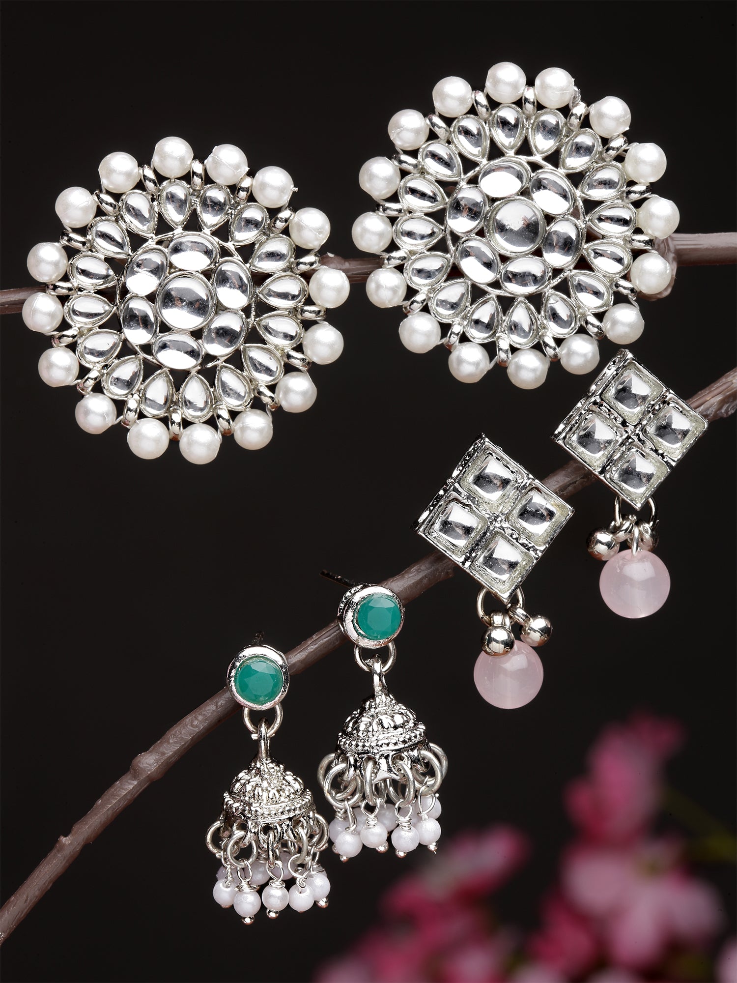 • Karatcart Set of 3 Handcrafted Kundan Earrings Combo for Women. Our products are designed with high-quality Kundan Stones and these products are enhanced with plating that are skin-friendly & with love to reach your heart.