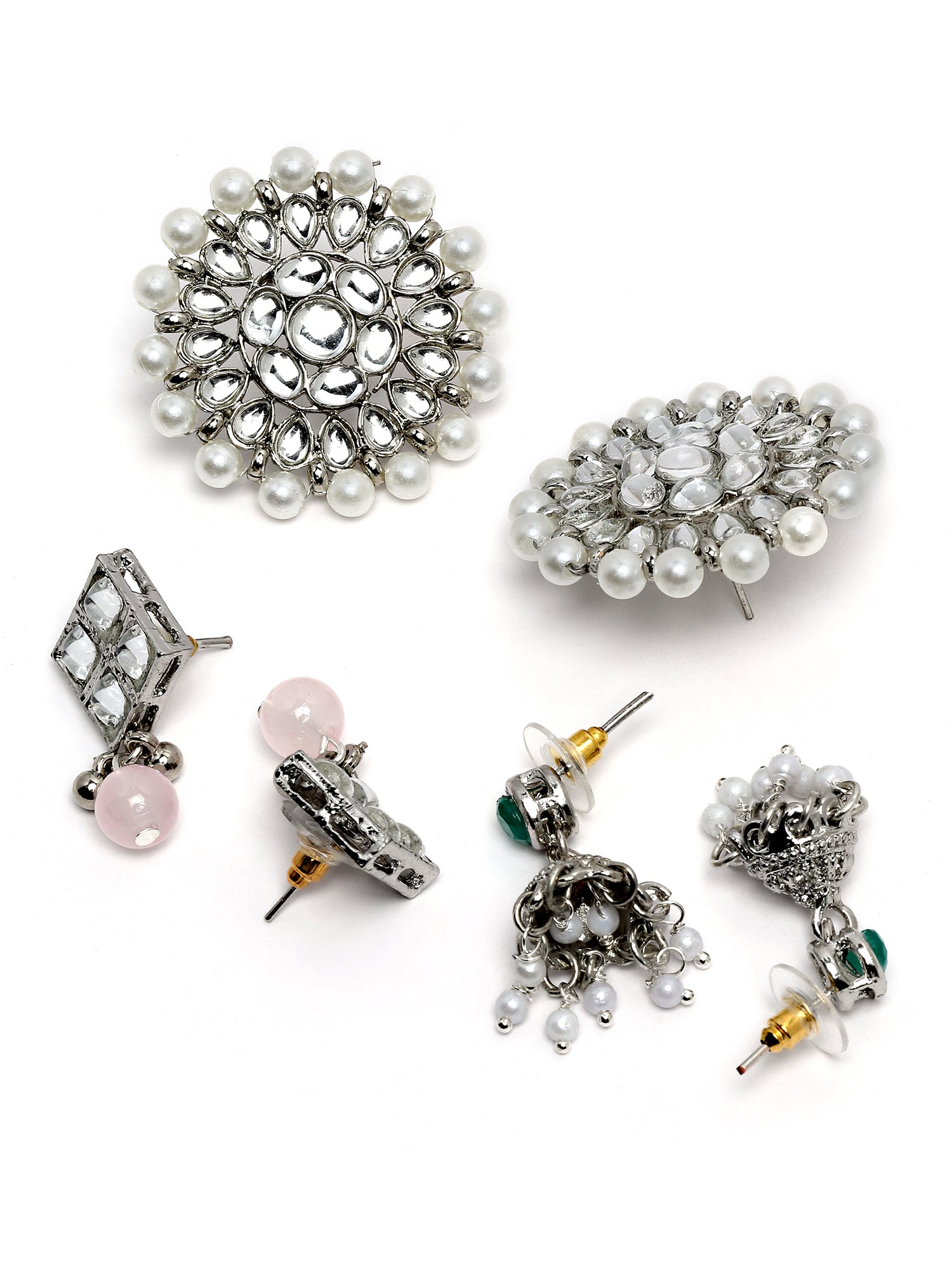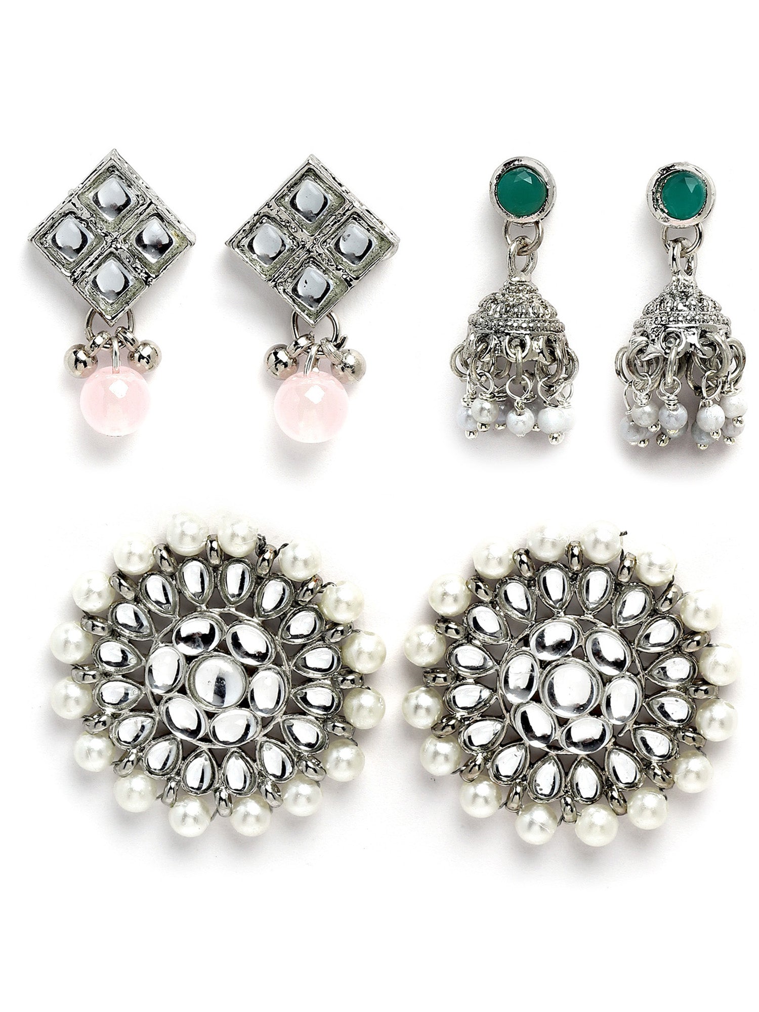 Karatcart Set of 3 Handcrafted Kundan Earrings Combo for Women