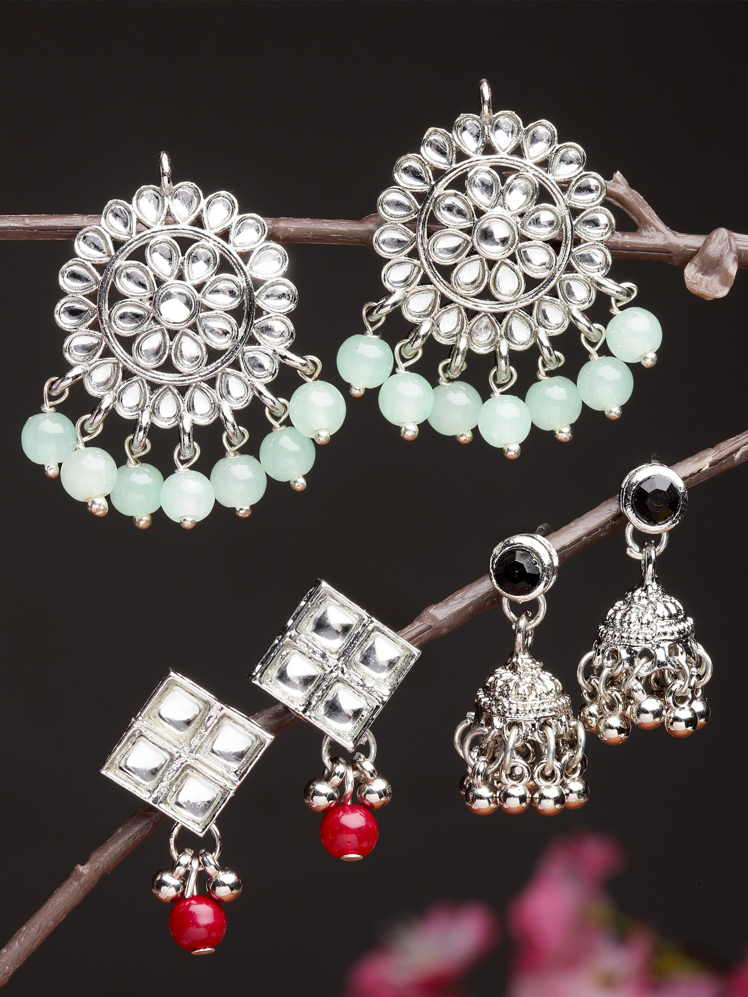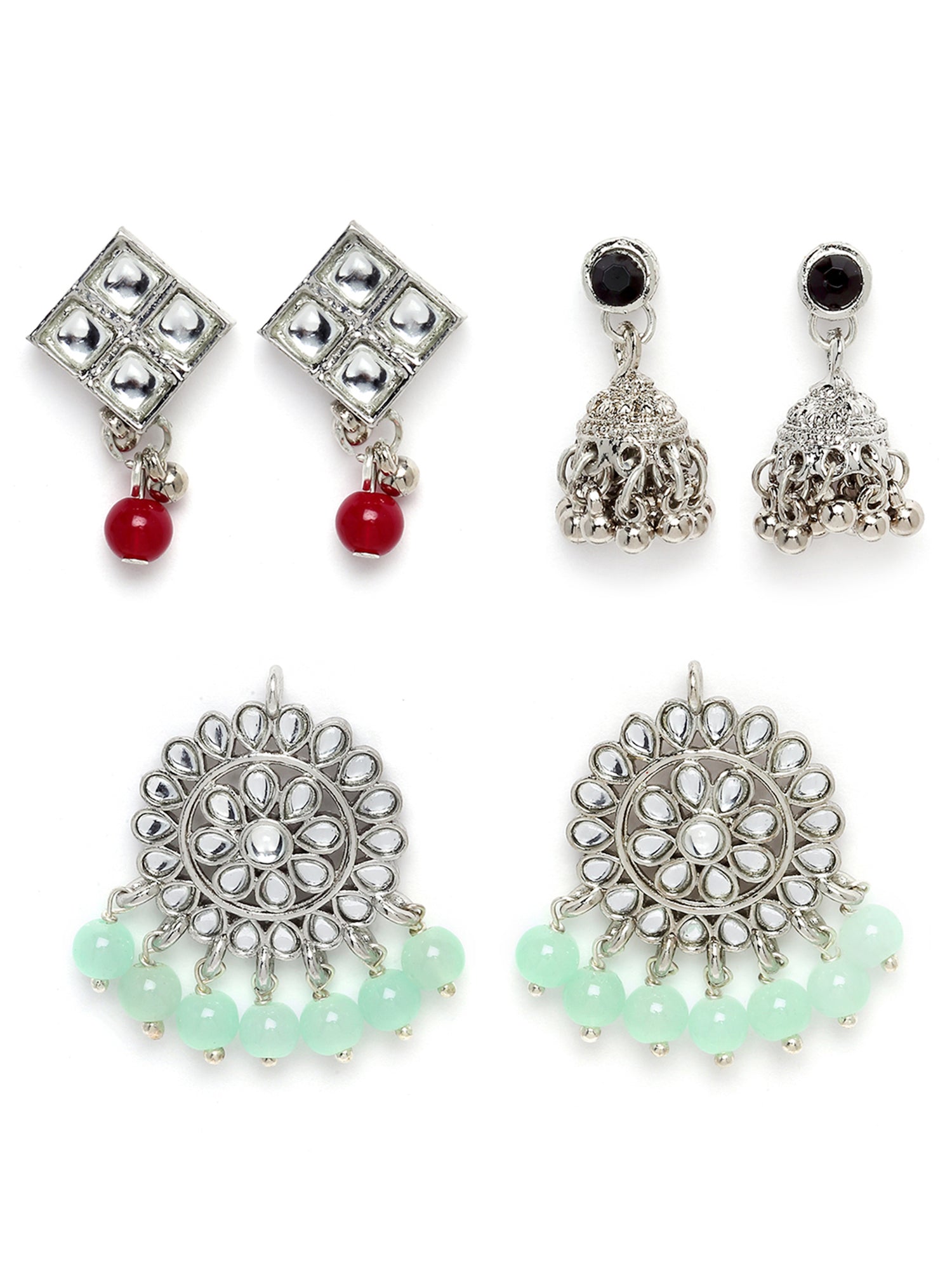 • Karatcart Set of 3 Handcrafted Kundan Earrings Combo for Women. Our products are designed with high-quality Kundan Stones and these products are enhanced with plating that are skin-friendly & with love to reach your heart.
