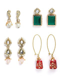 Karatcart Set of 4 Handcrafted Kundan Earrings Combo for Women