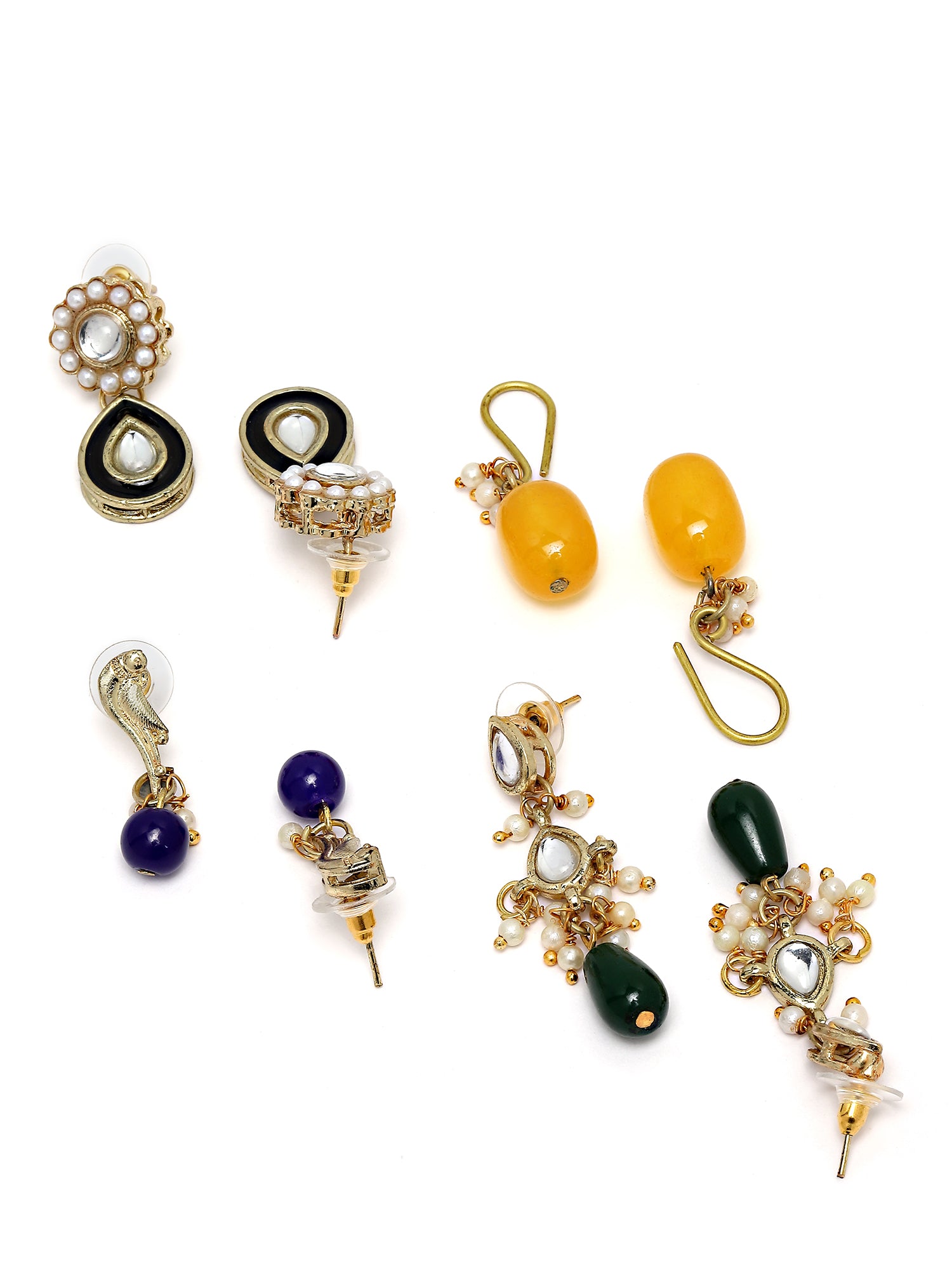 Karatcart Set of 4 Handcrafted Kundan Earrings Combo for Women