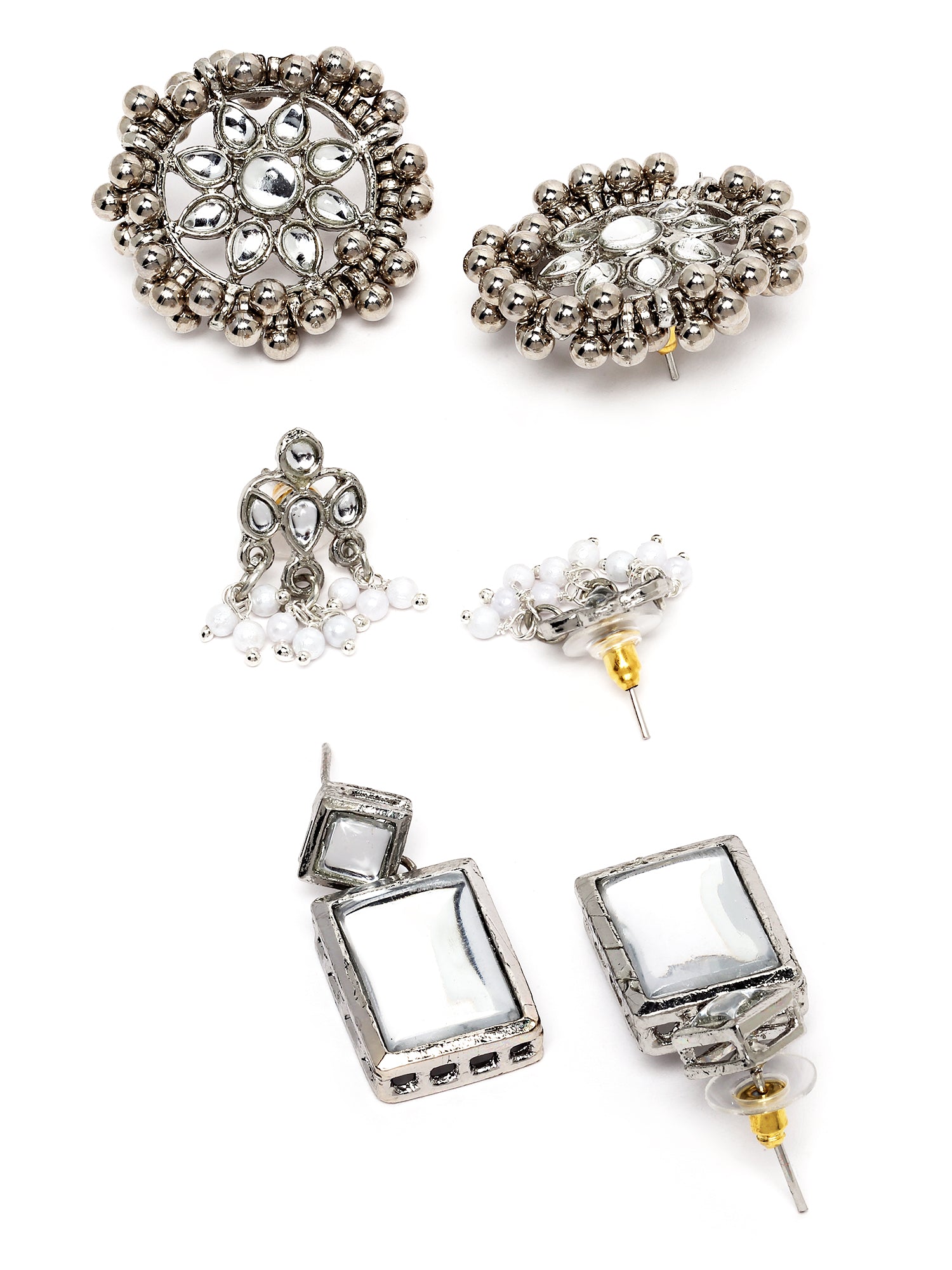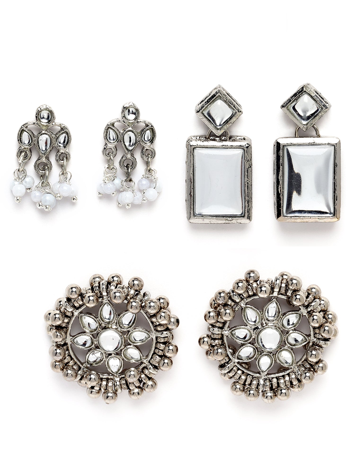 Karatcart Set of 3 Handcrafted Kundan Earrings Combo for Women