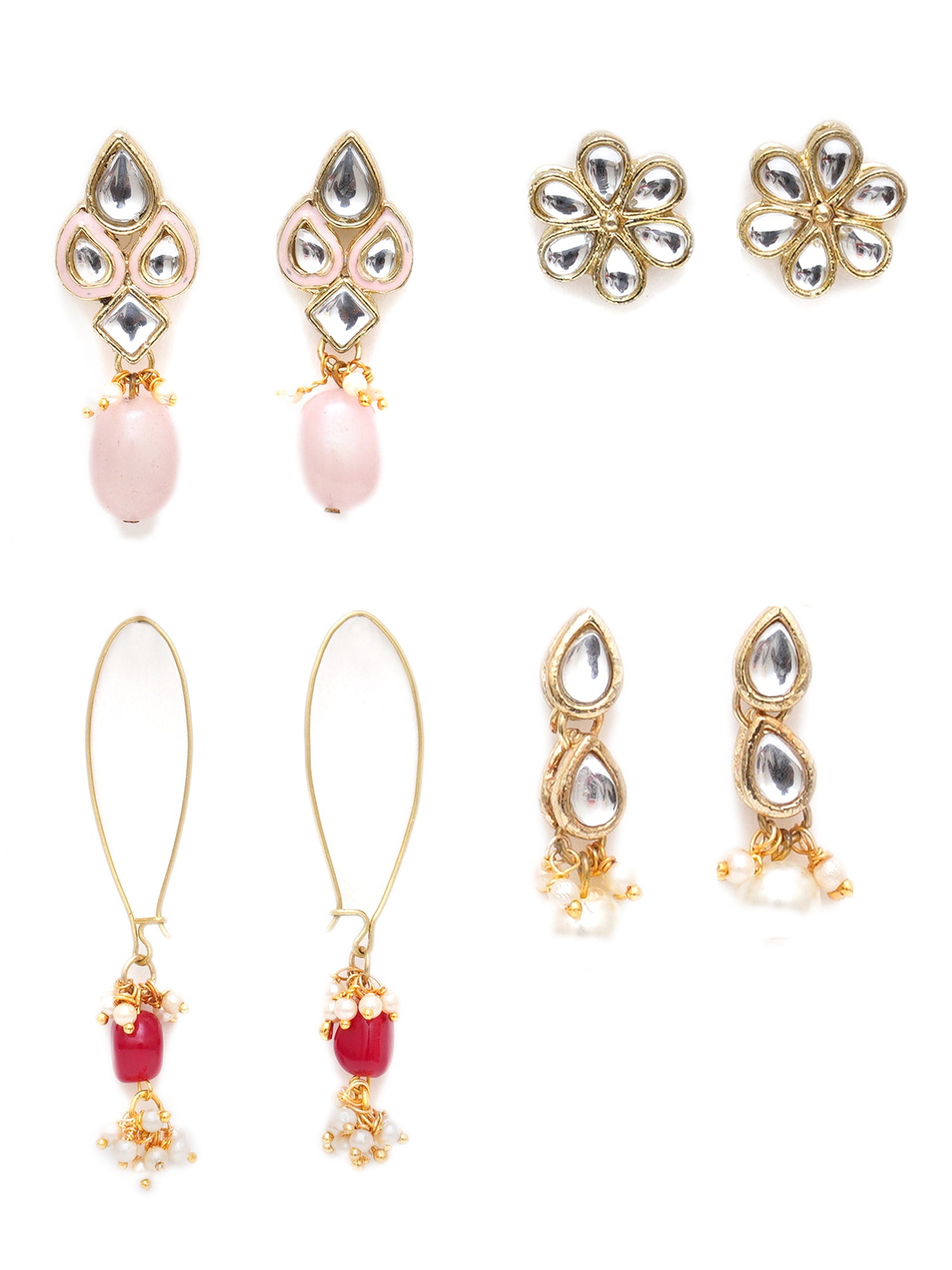 • Karatcart Set of 4 Handcrafted Kundan Earrings Combo for Women. Our products are designed with high-quality Kundan Stones and these products are enhanced with plating that are skin-friendly & with love to reach your heart.