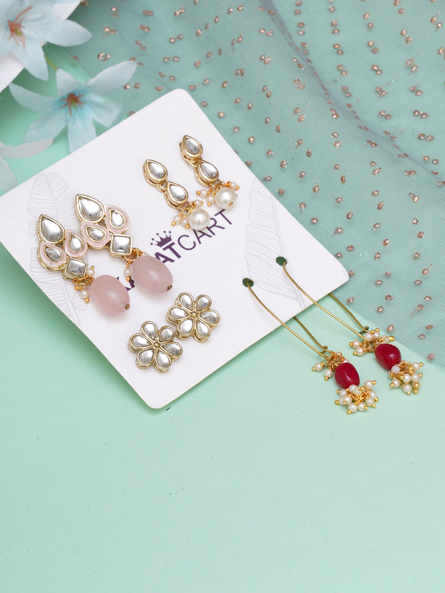 Karatcart Set of 4 Handcrafted Kundan Earrings Combo for Women