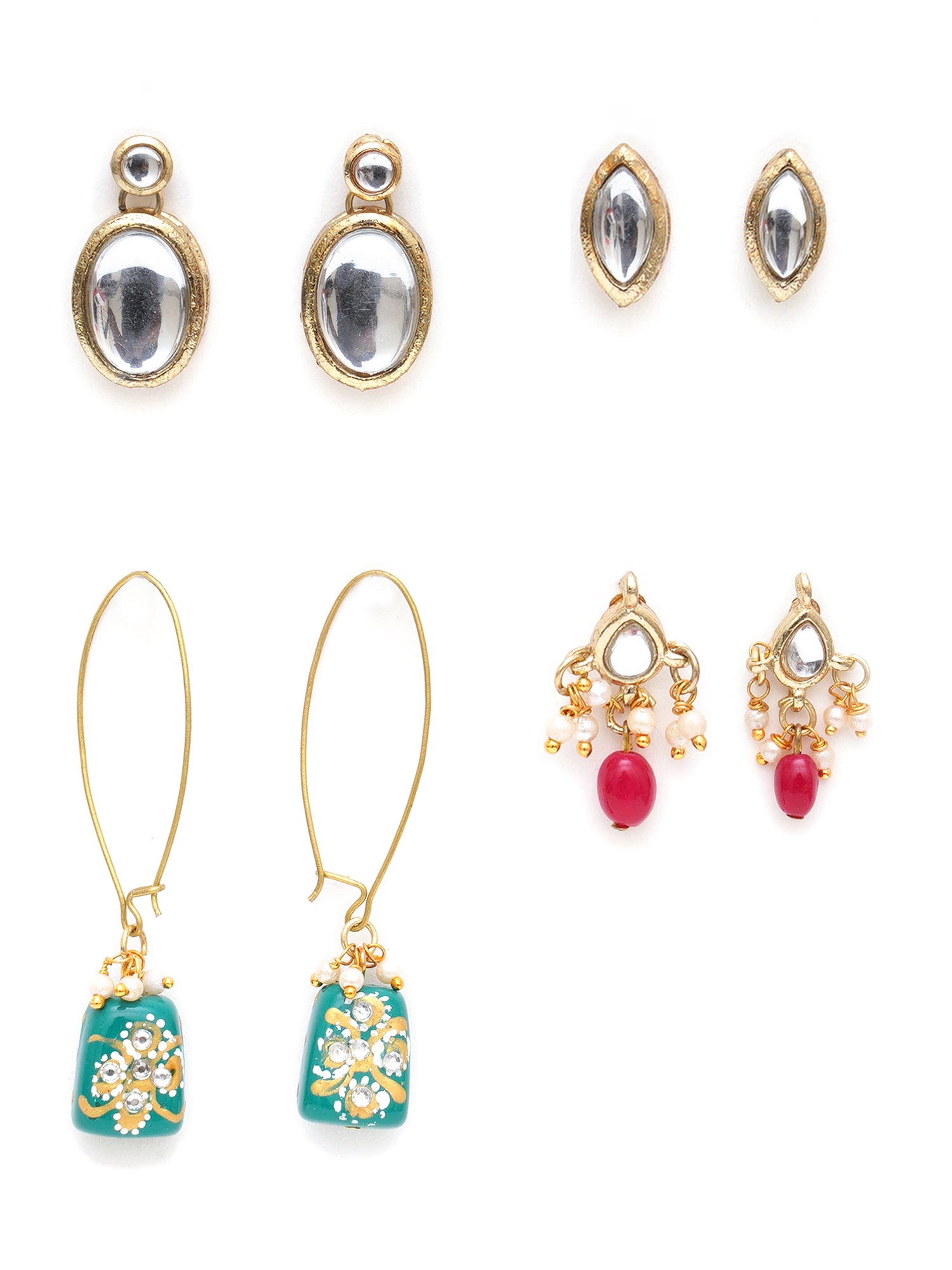 • Karatcart Set of 4 Handcrafted Kundan Earrings Combo for Women. Our products are designed with high-quality Kundan Stones and these products are enhanced with plating that are skin-friendly & with love to reach your heart.
