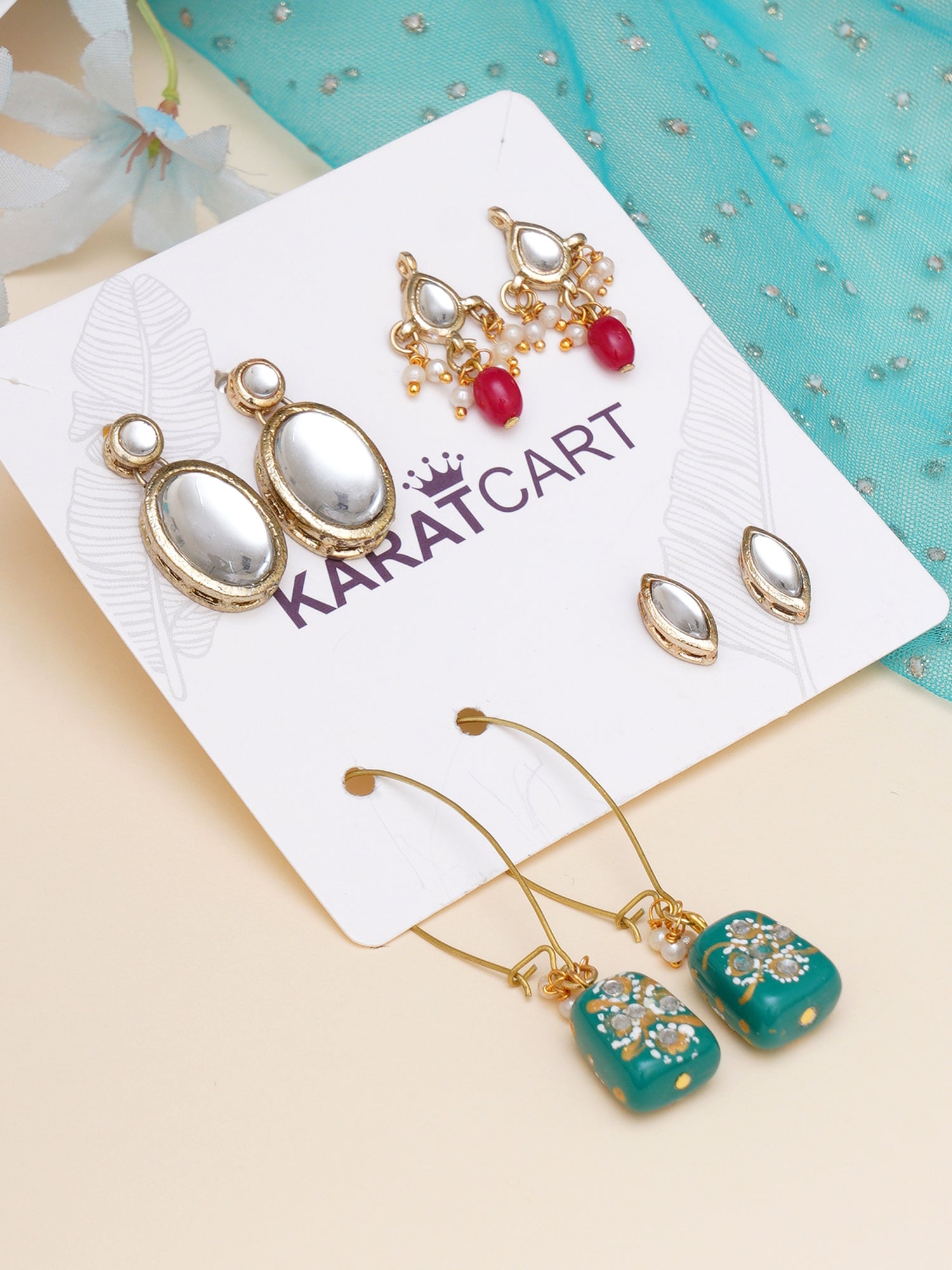 Karatcart Set of 4 Handcrafted Kundan Earrings Combo for Women
