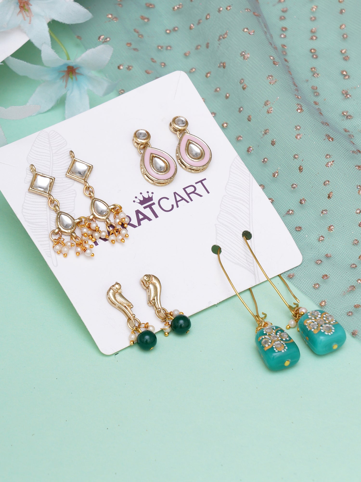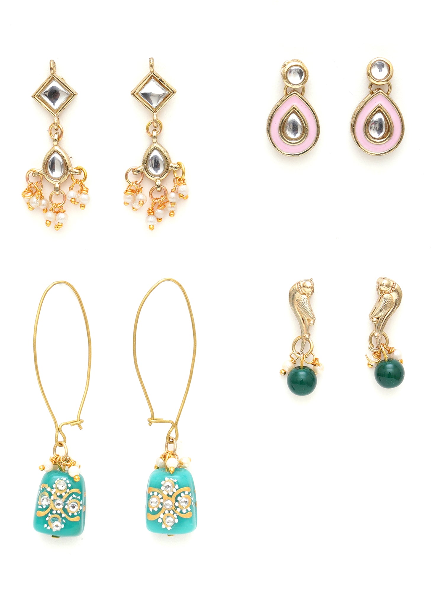 • Karatcart Set of 4 Handcrafted Kundan Earrings Combo for Women. Our products are designed with high-quality Kundan Stones and these products are enhanced with plating that are skin-friendly & with love to reach your heart.