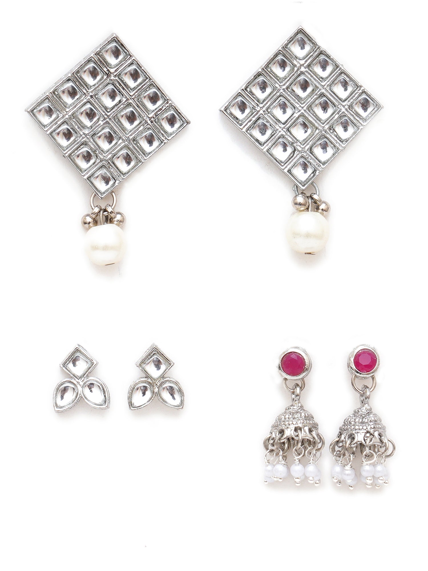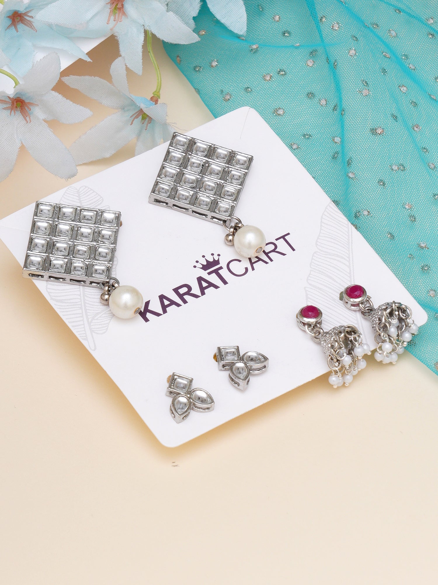 Karatcart Set of 3 Handcrafted Kundan Earrings Combo for Women
