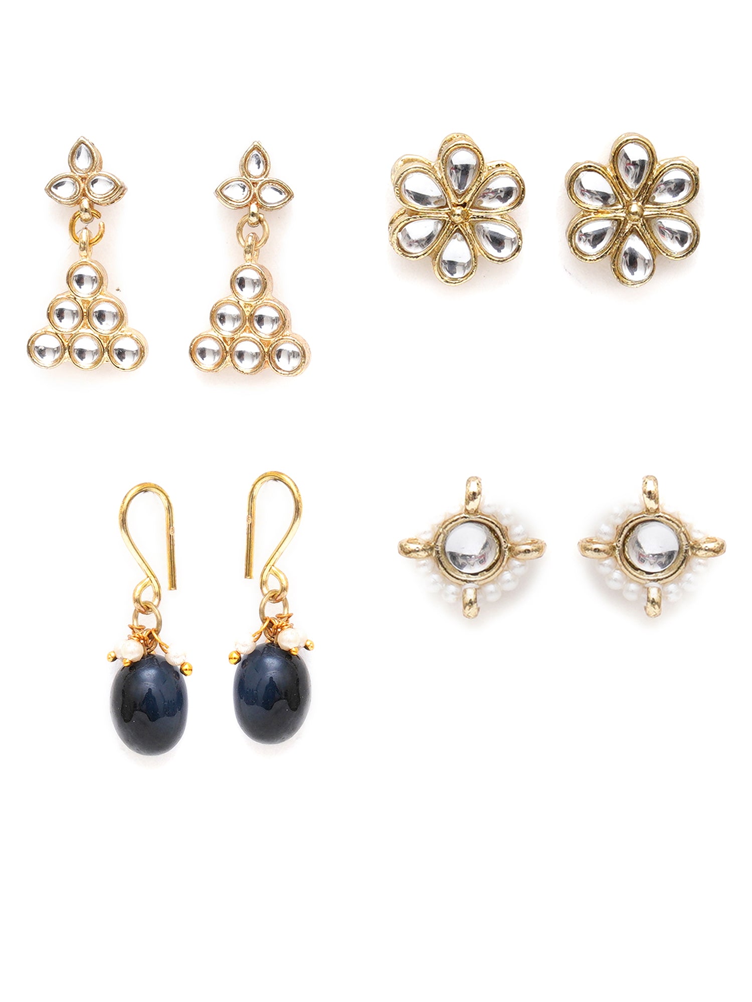 • Karatcart Set of 4 Handcrafted Kundan Earrings Combo for Women. Our products are designed with high-quality Kundan Stones and these products are enhanced with plating that are skin-friendly & with love to reach your heart.