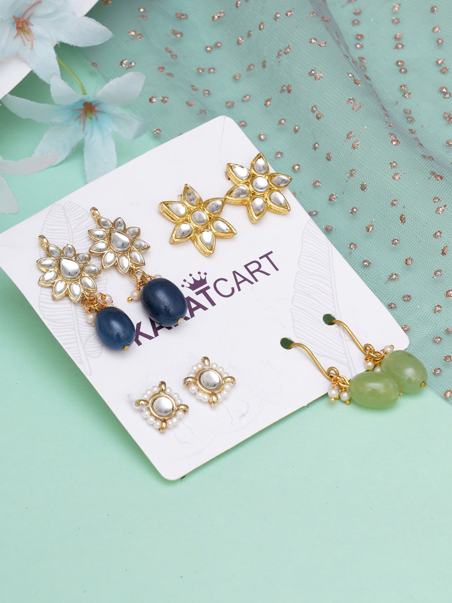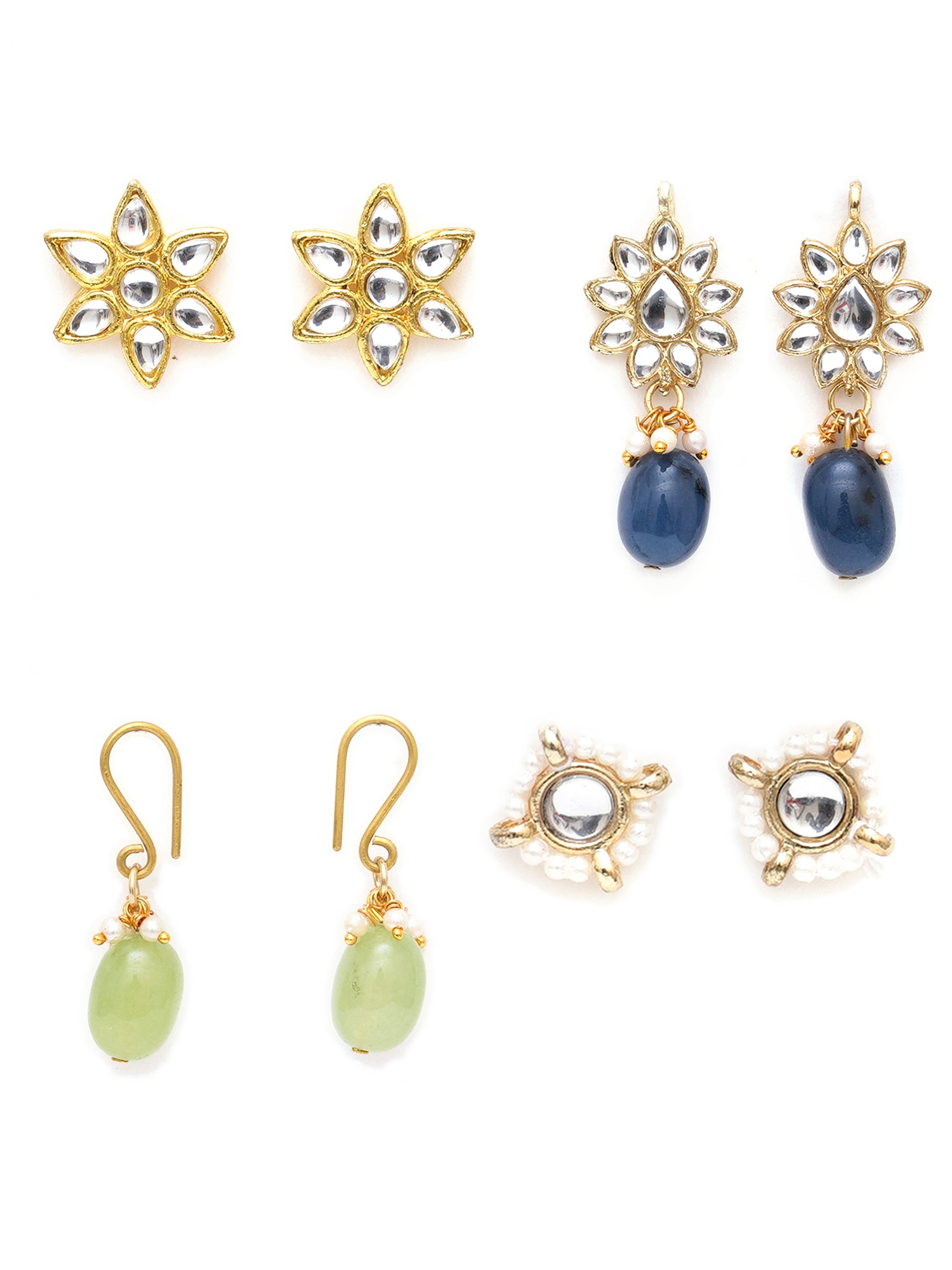 • Karatcart Set of 4 Handcrafted Kundan Earrings Combo for Women. Our products are designed with high-quality Kundan Stones and these products are enhanced with plating that are skin-friendly & with love to reach your heart.