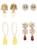 Karatcart Set of 4 Handcrafted Kundan Earrings Combo for Women