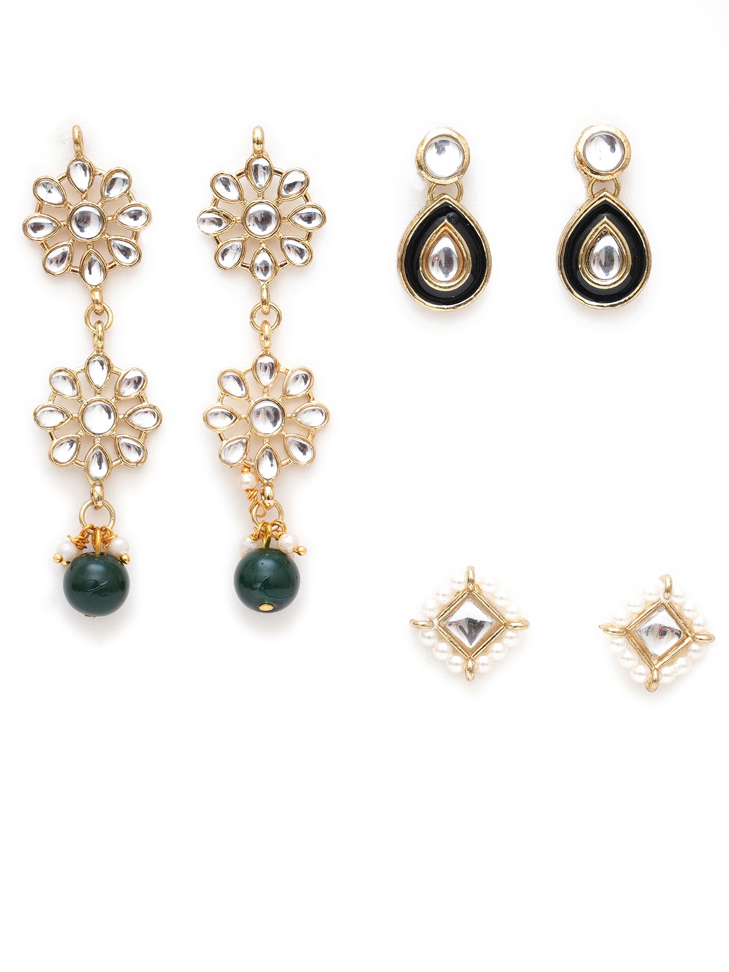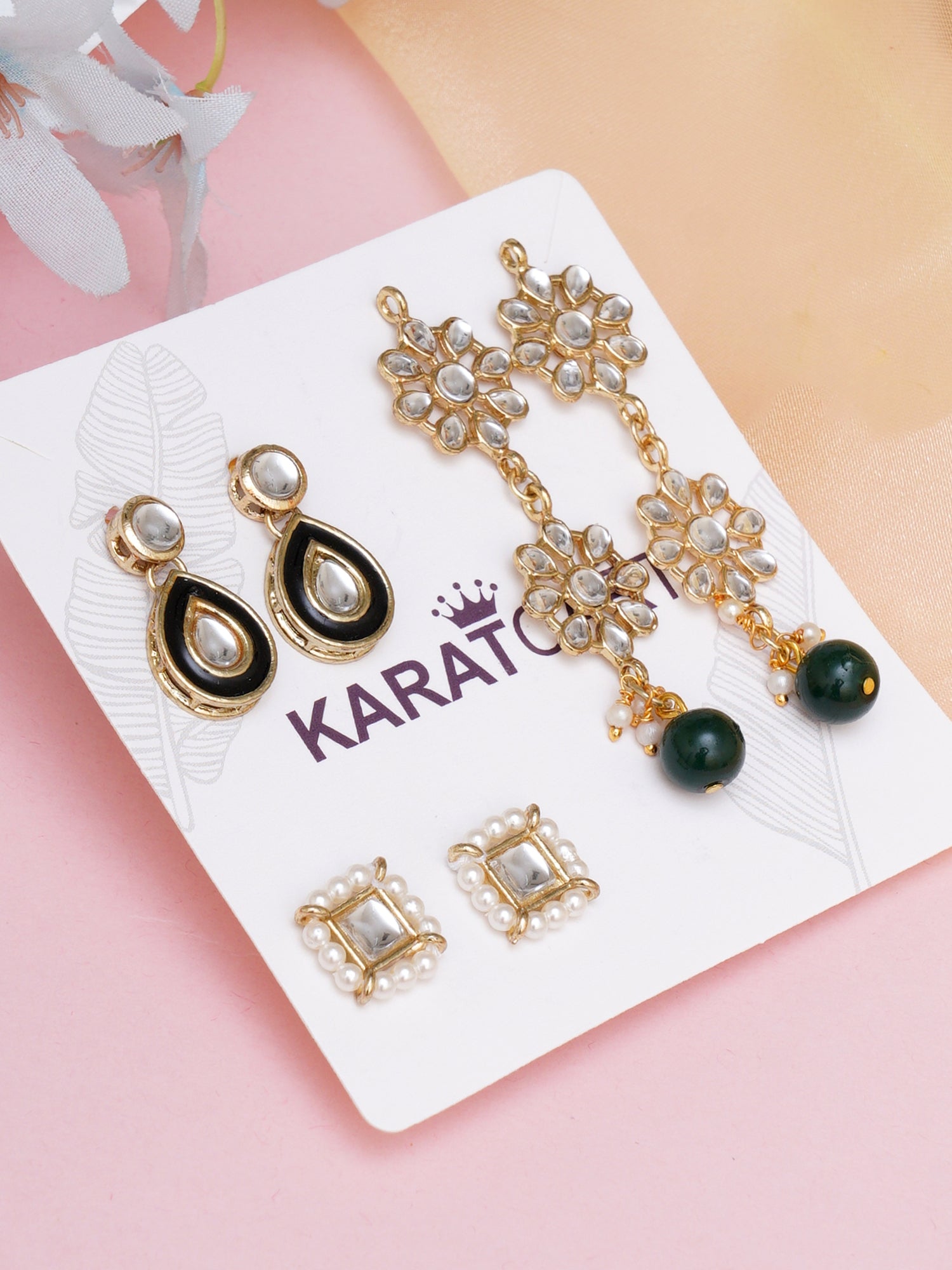 Karatcart Set of 3 Handcrafted Kundan Earrings Combo for Women