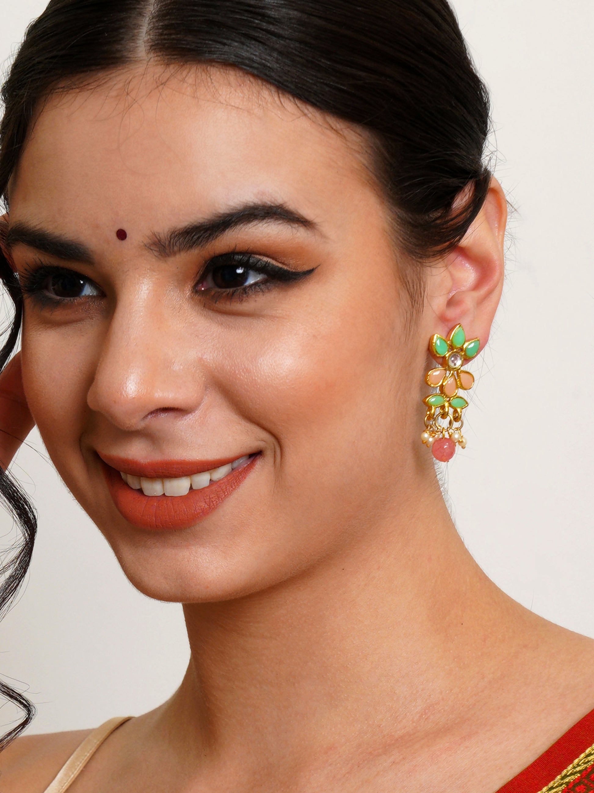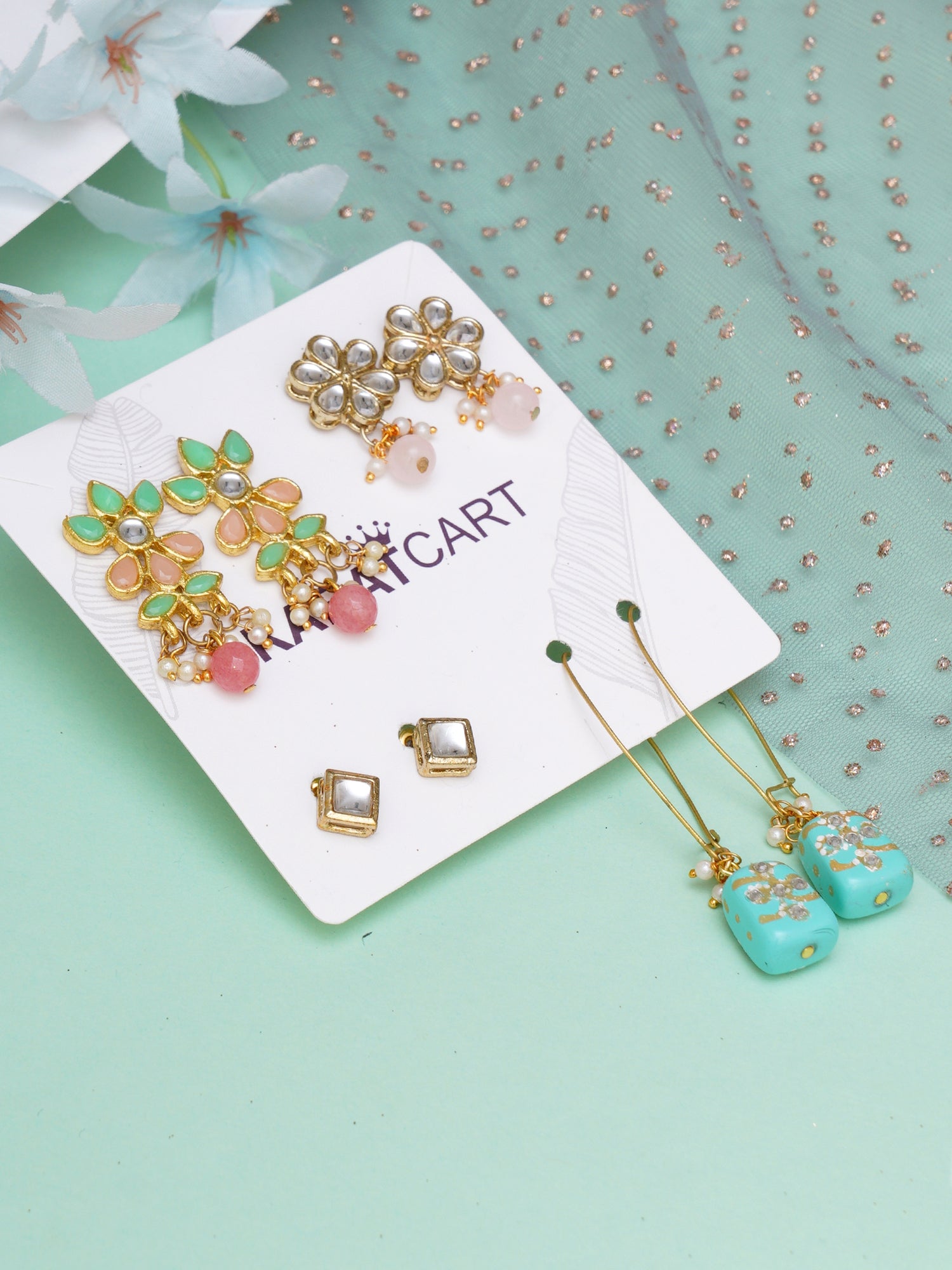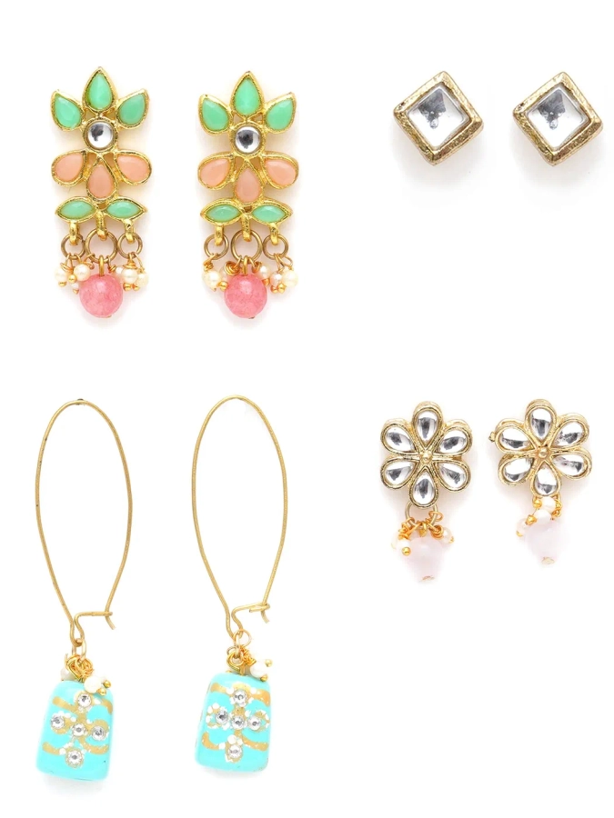• Karatcart Set of 4 Handcrafted Kundan Earrings Combo for Women. Our products are designed with high-quality Kundan Stones and these products are enhanced with plating that are skin-friendly & with love to reach your heart.