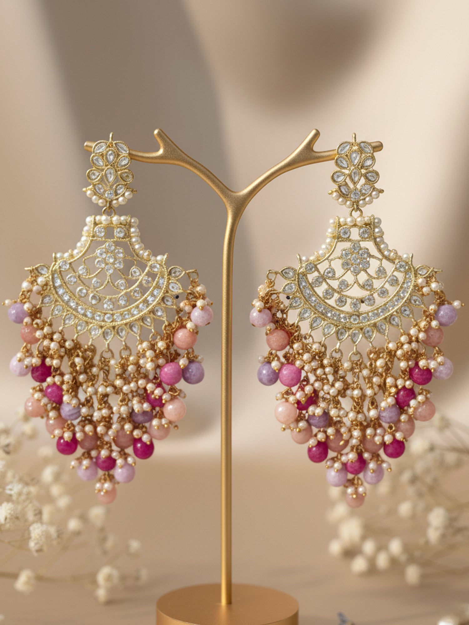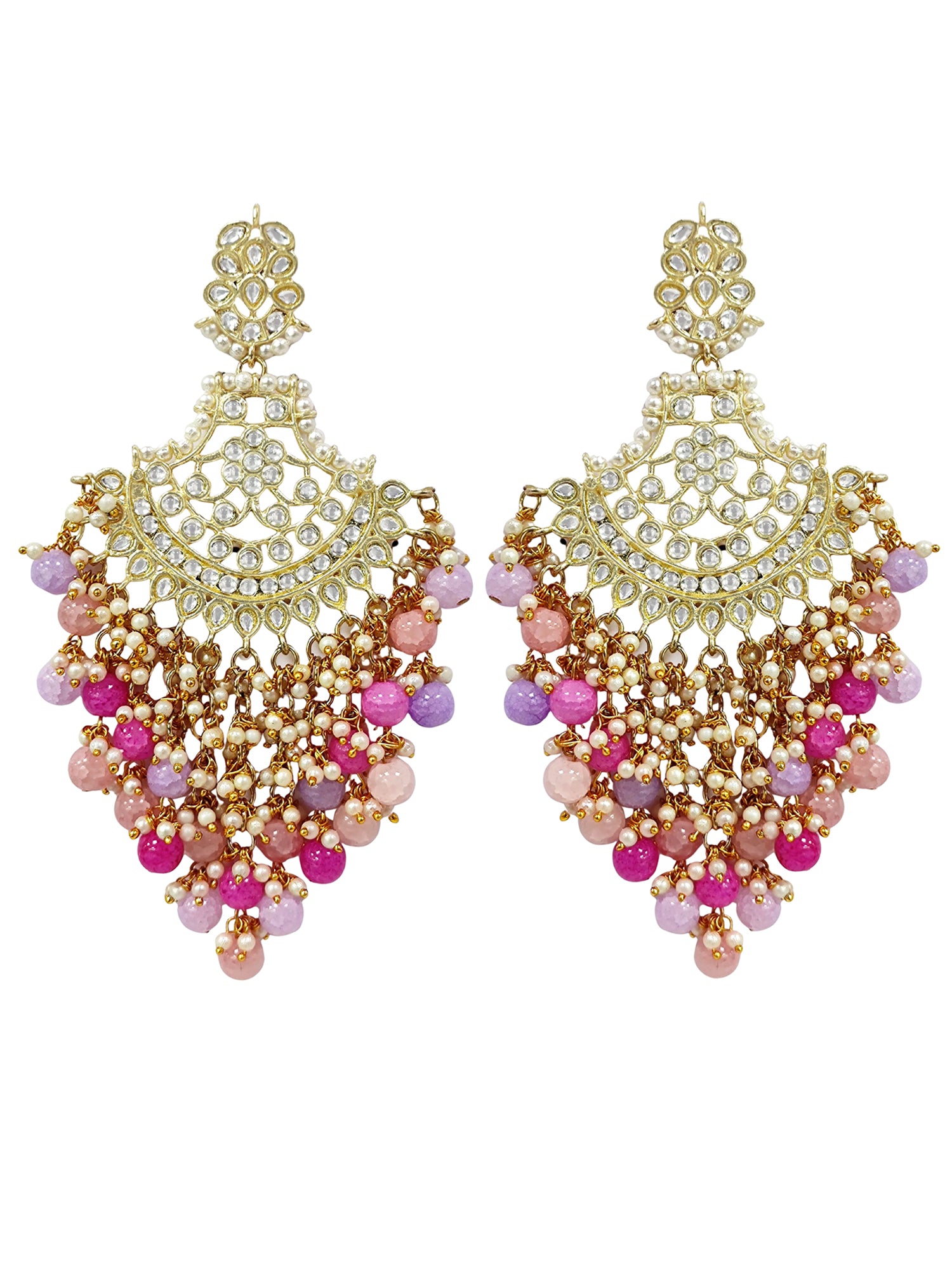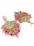 KARATCART Designer Gold-Plated Kundan Chandbali Earrings with Multicolor Beads for Women