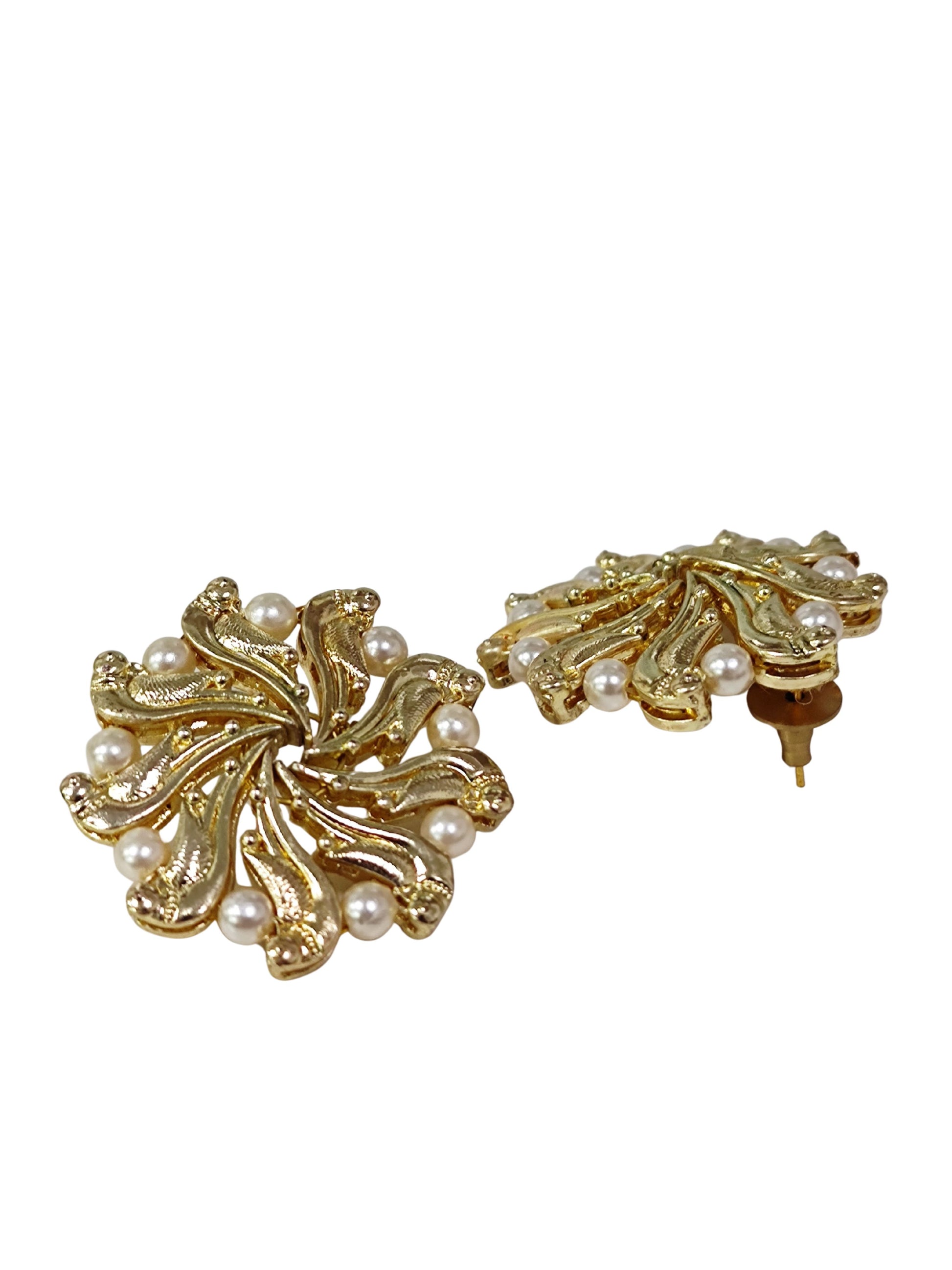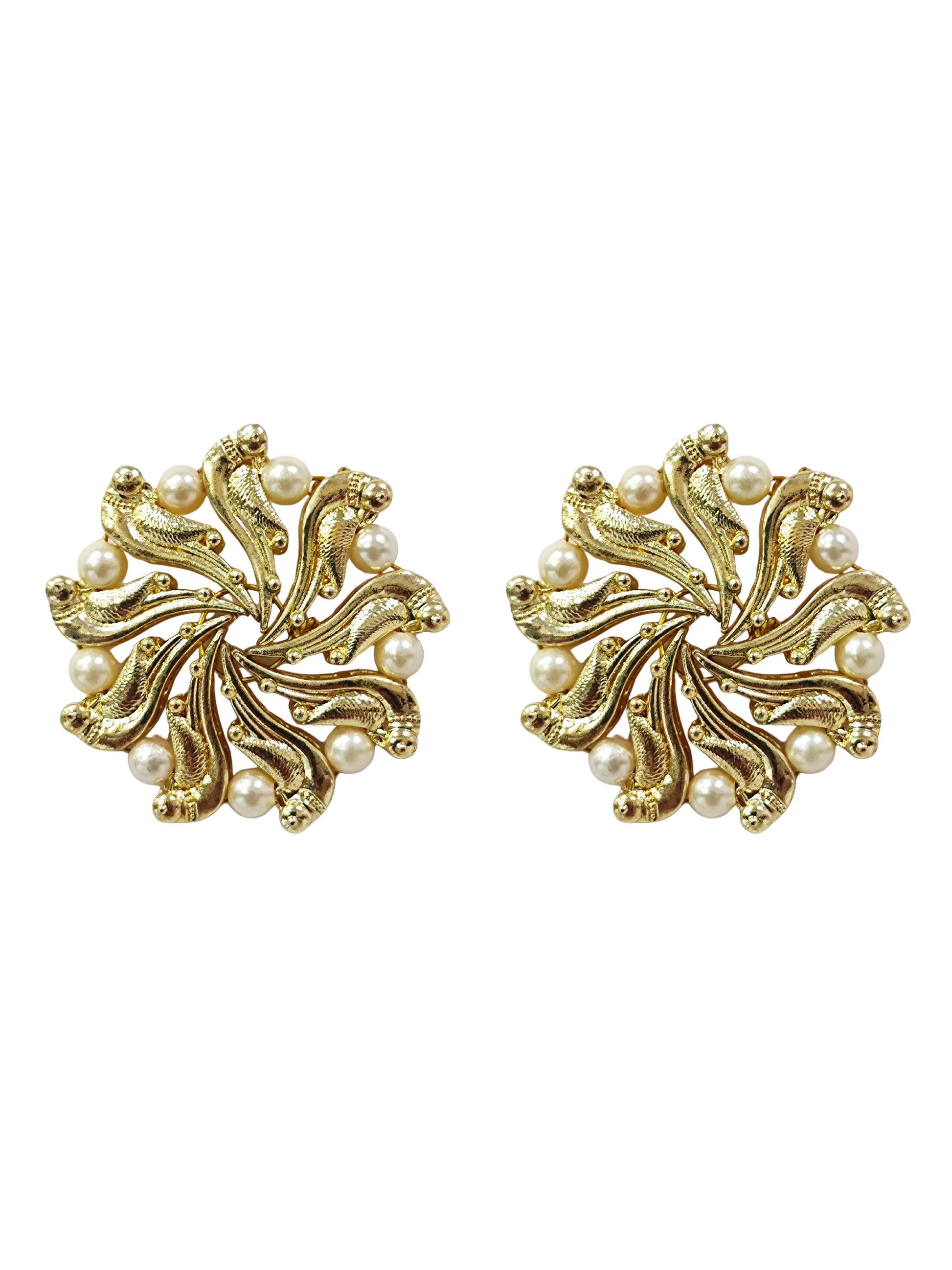 KARATCART Gold-Plated Handcrafted Pearl-Studded Parrot Stud Earrings for Women