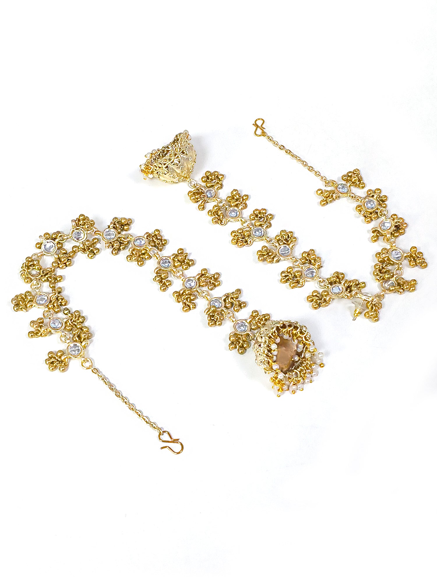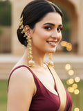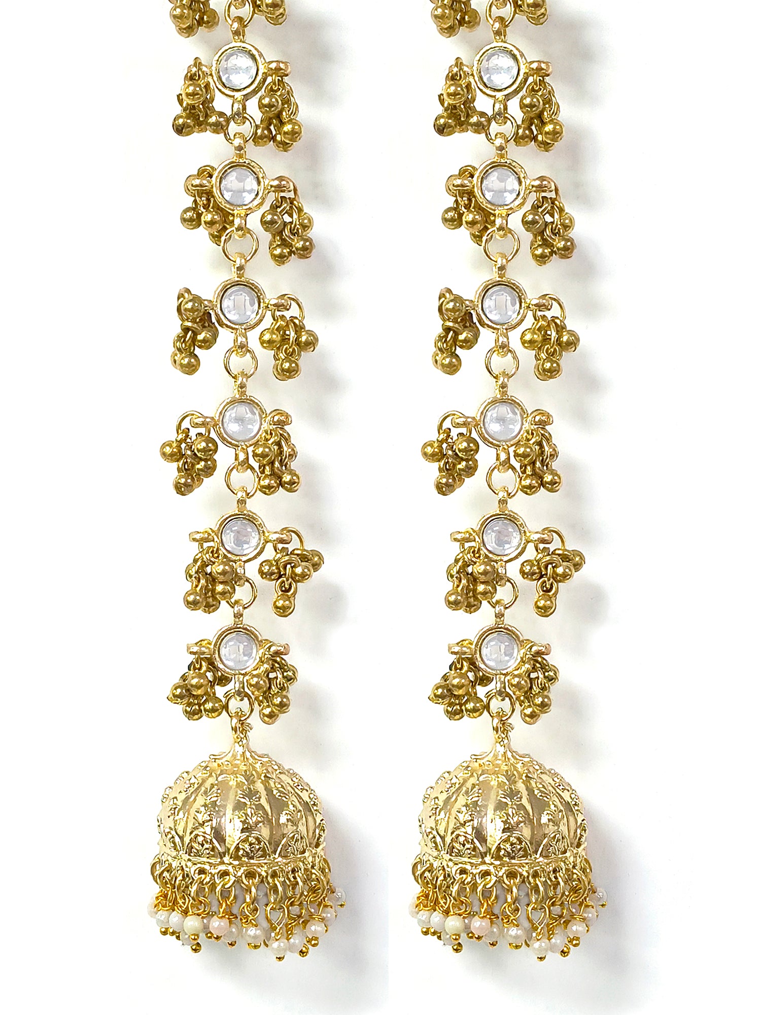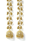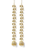 KARATCART Traditional Gold-Plated White Kundan Long Kashmiri Style Jhumki Kaanchain Earrings for Women