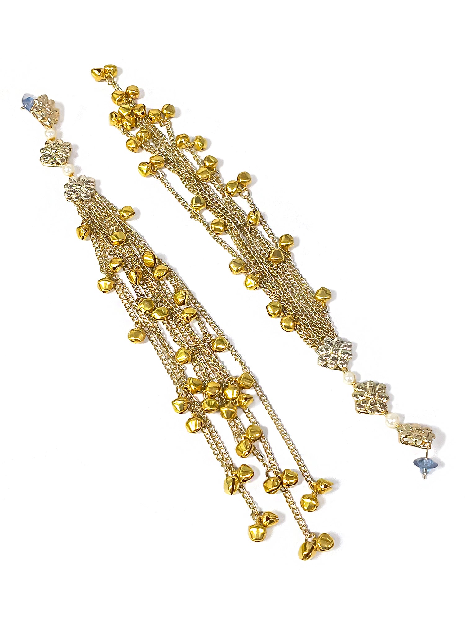 KARATCART Traditional Gold-Plated Kashmiri Style Long Chain Ghungroo Tassel Earrings for Women