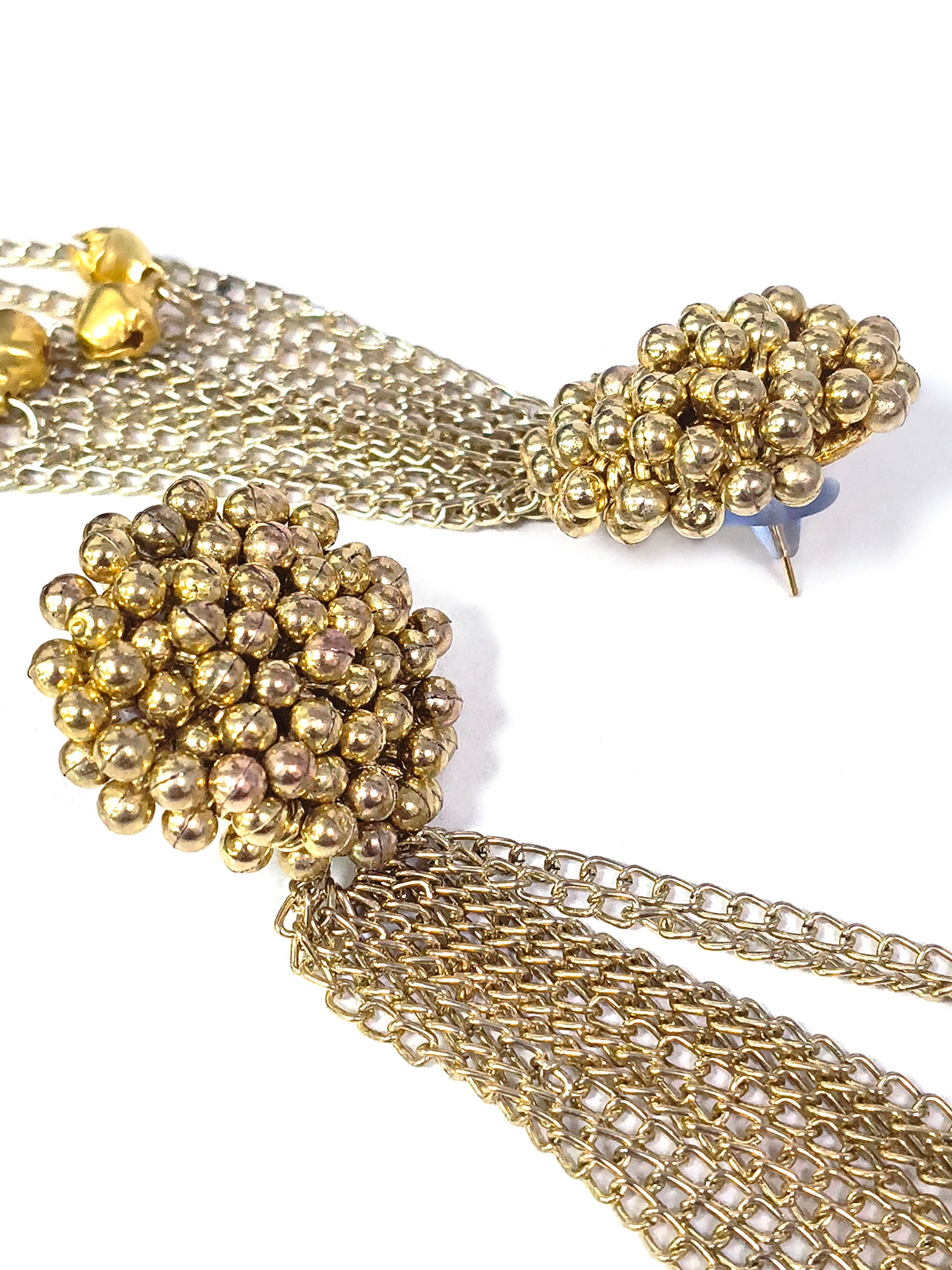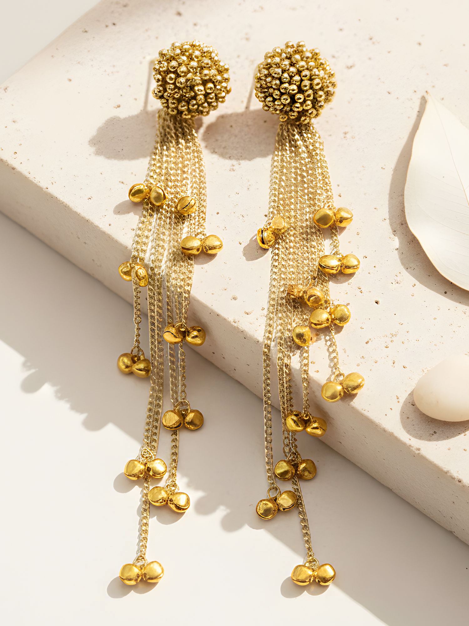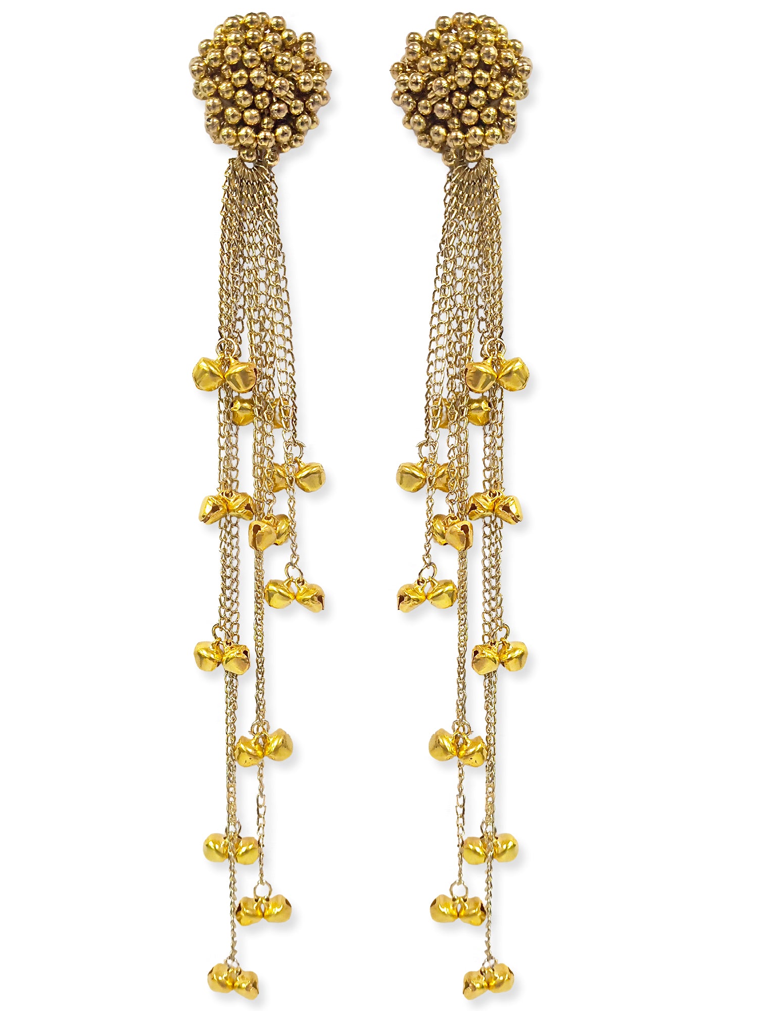 KARATCART Traditional Gold-Plated Kashmiri Style Ghungroo Chain Tassel Earrings for Women