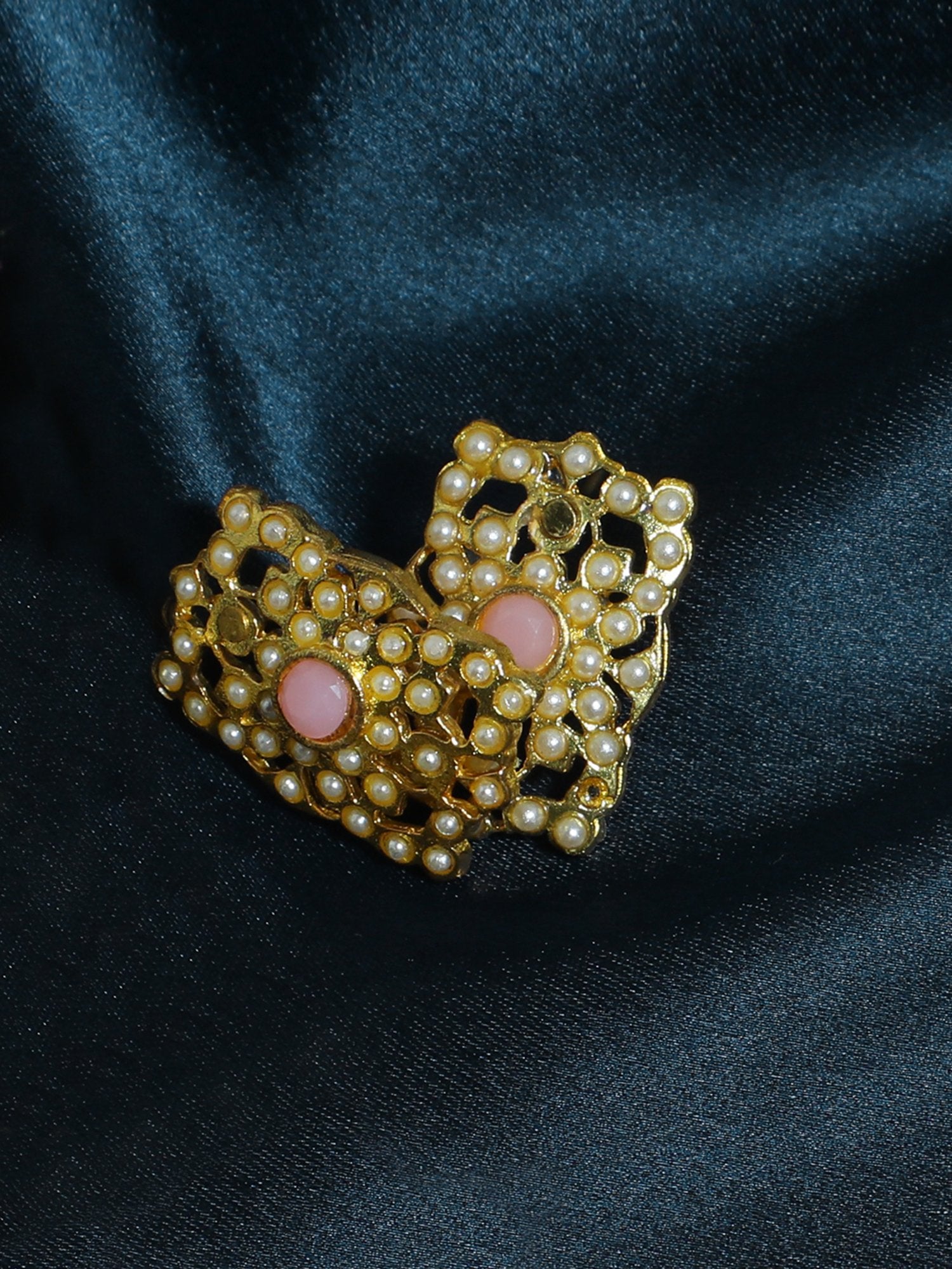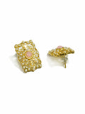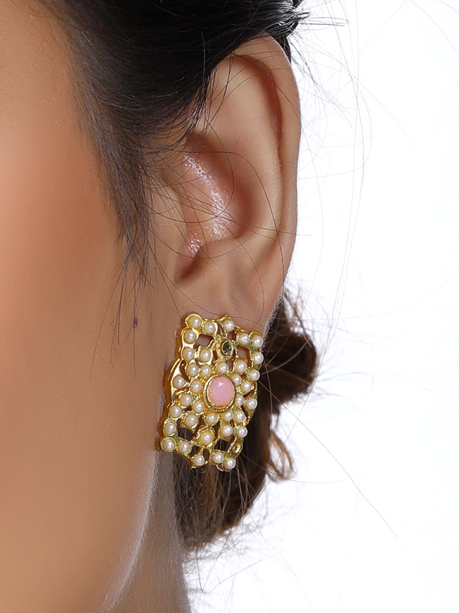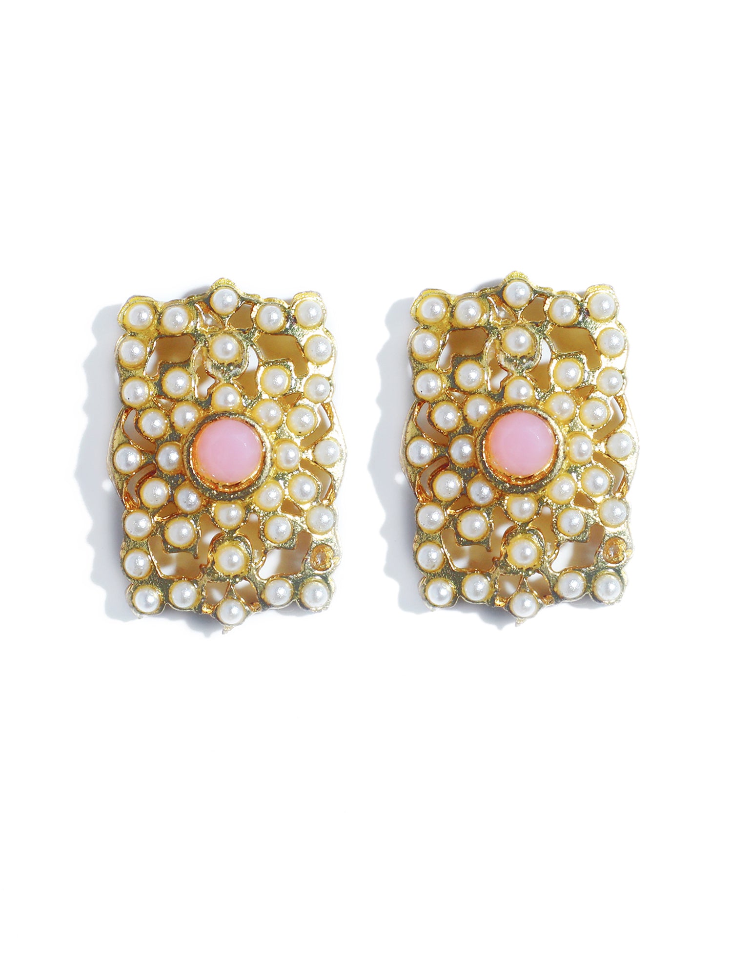 - Gold Plated Pink Kundan Stud Earrings for Women. It's Five Layer Micro Gold Plated and Embellished with Kundan for High Durability. Intricate high polish creates glamorous reflections and adds a luxurious look. Perfect for Weddings, Festivals, Traditional Occasions. Best when paired with any Indian outfit.
