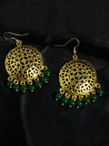 Gold Plated Green Beads Kundan Dangler Earrings for Women