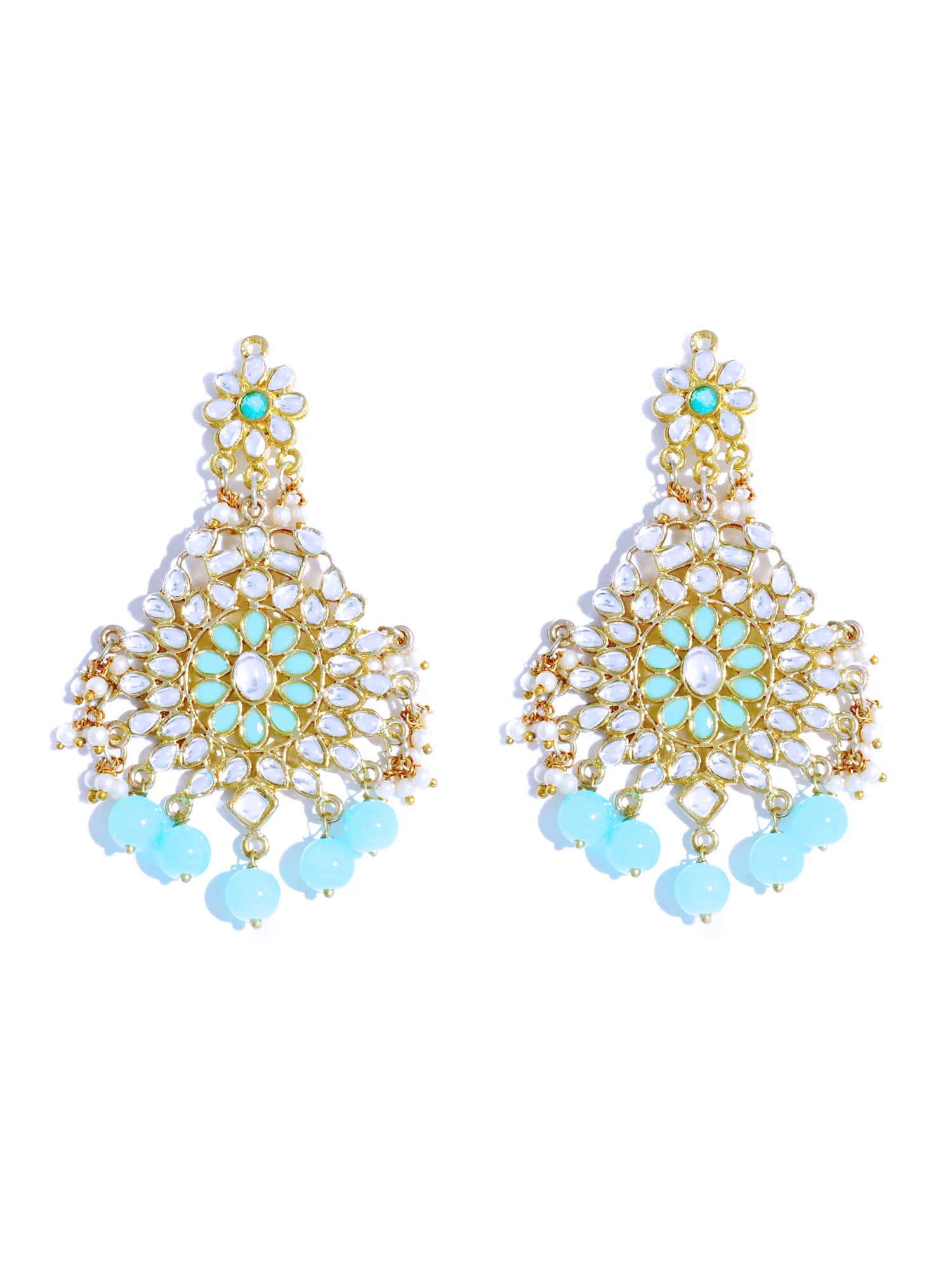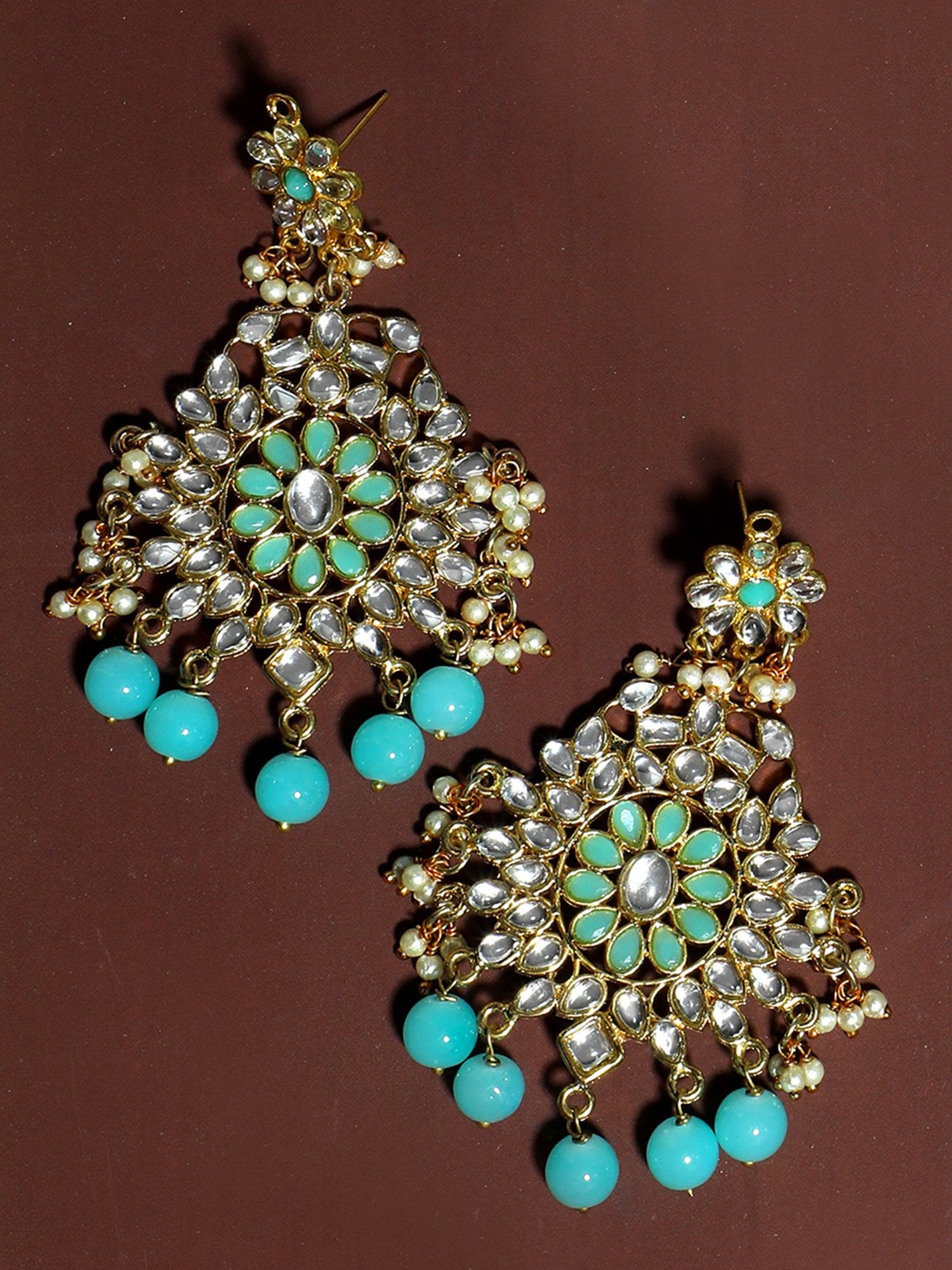 - Gold Plated Blue Beads Kundan Dangler Earrings for Women. It's Five Layer Micro Gold Plated and Embellished with Kundan for High Durability. Intricate high polish creates glamorous reflections and adds a luxurious look. Perfect for Weddings, Festivals, Traditional Occasions. Best when paired with any Indian outfit.