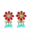 Gold Plated Blue Beads Red Kundan Dangler Earrings for Women
