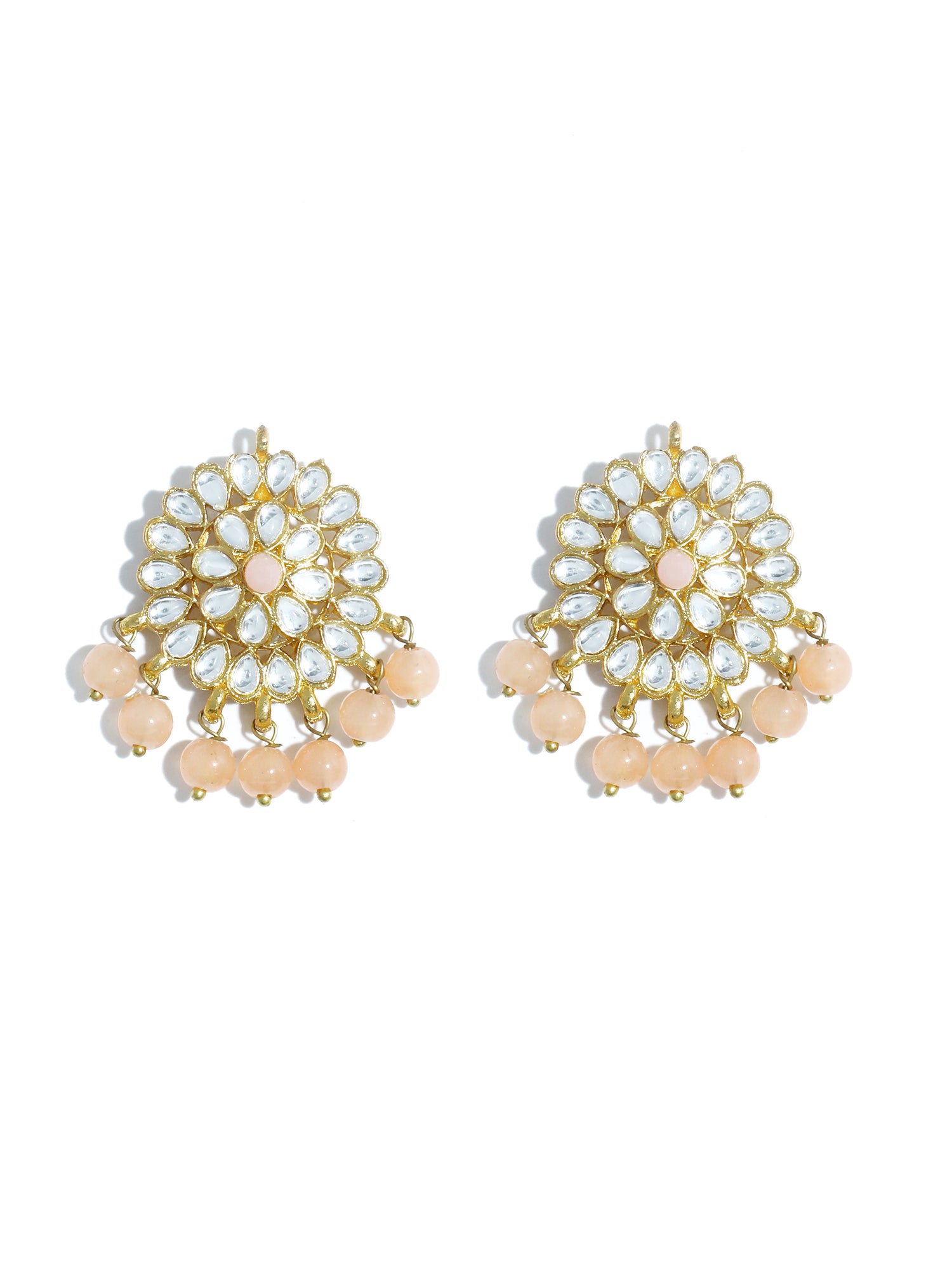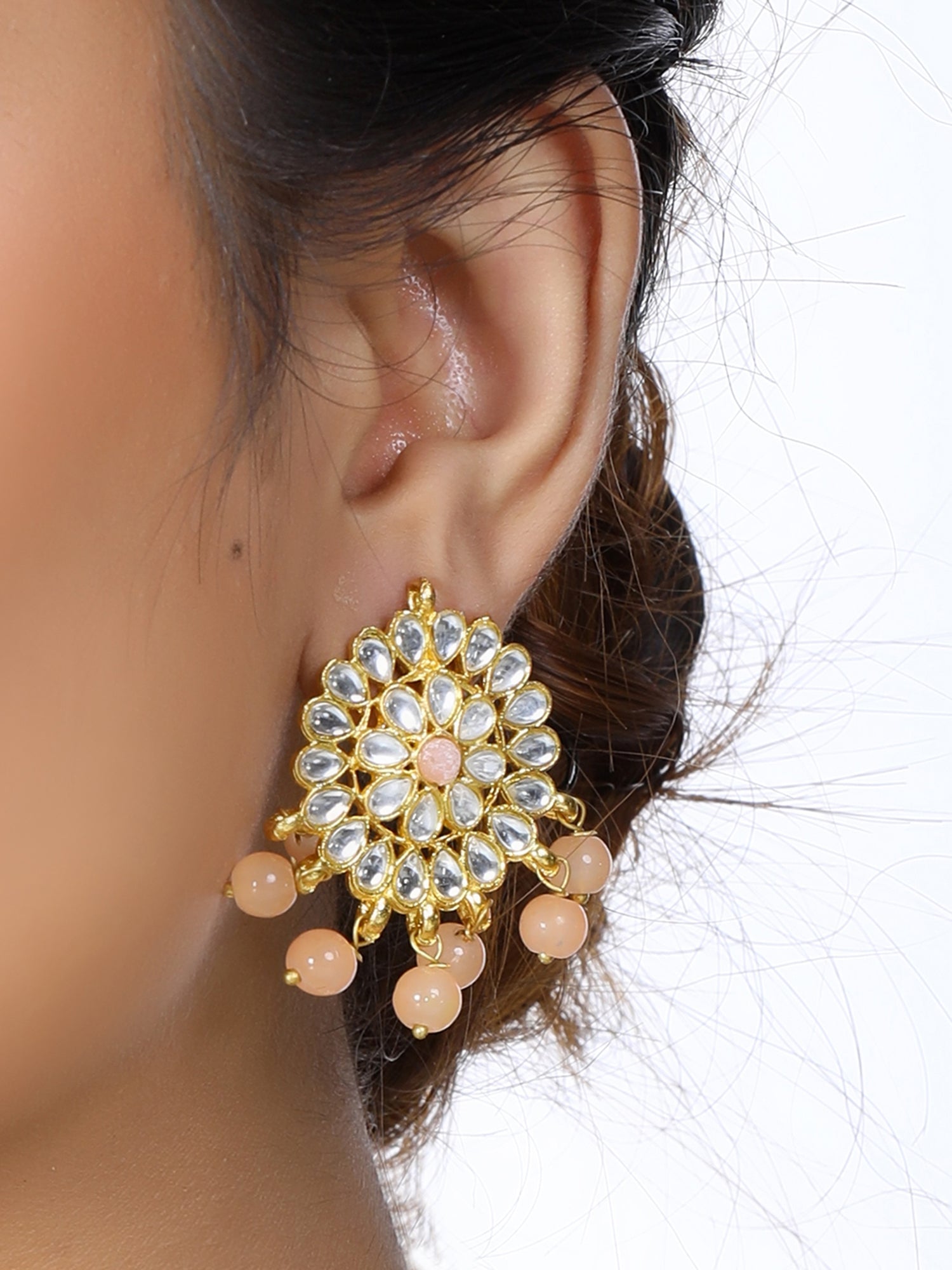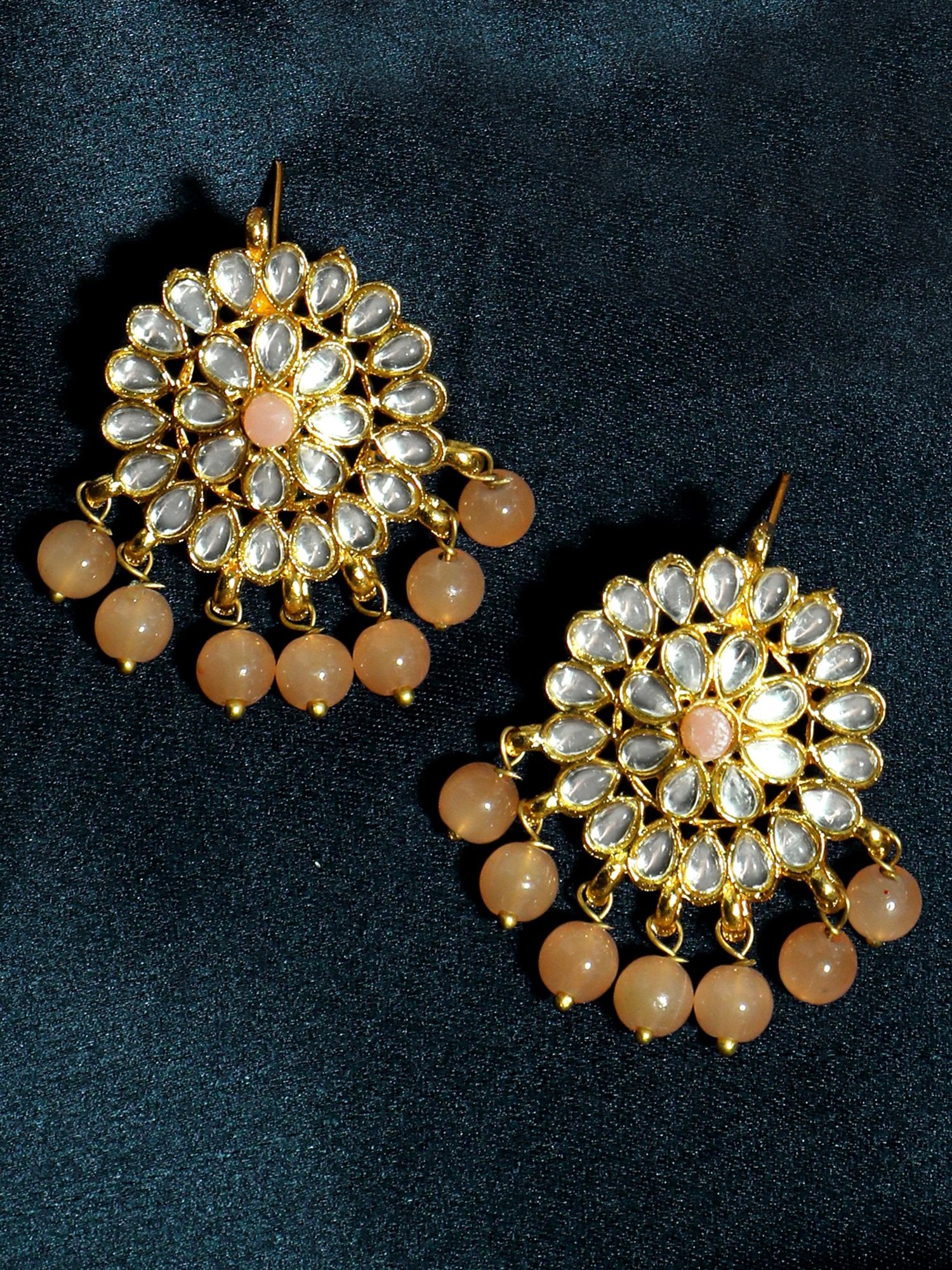 Gold Plated Peach Beads Kundan Dangler Earrings for Women