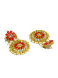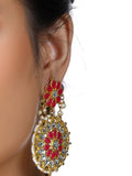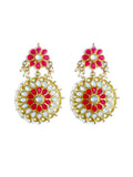 Gold Plated Red and White Kundan Dangler Earrings for Women