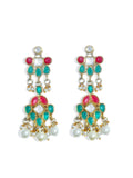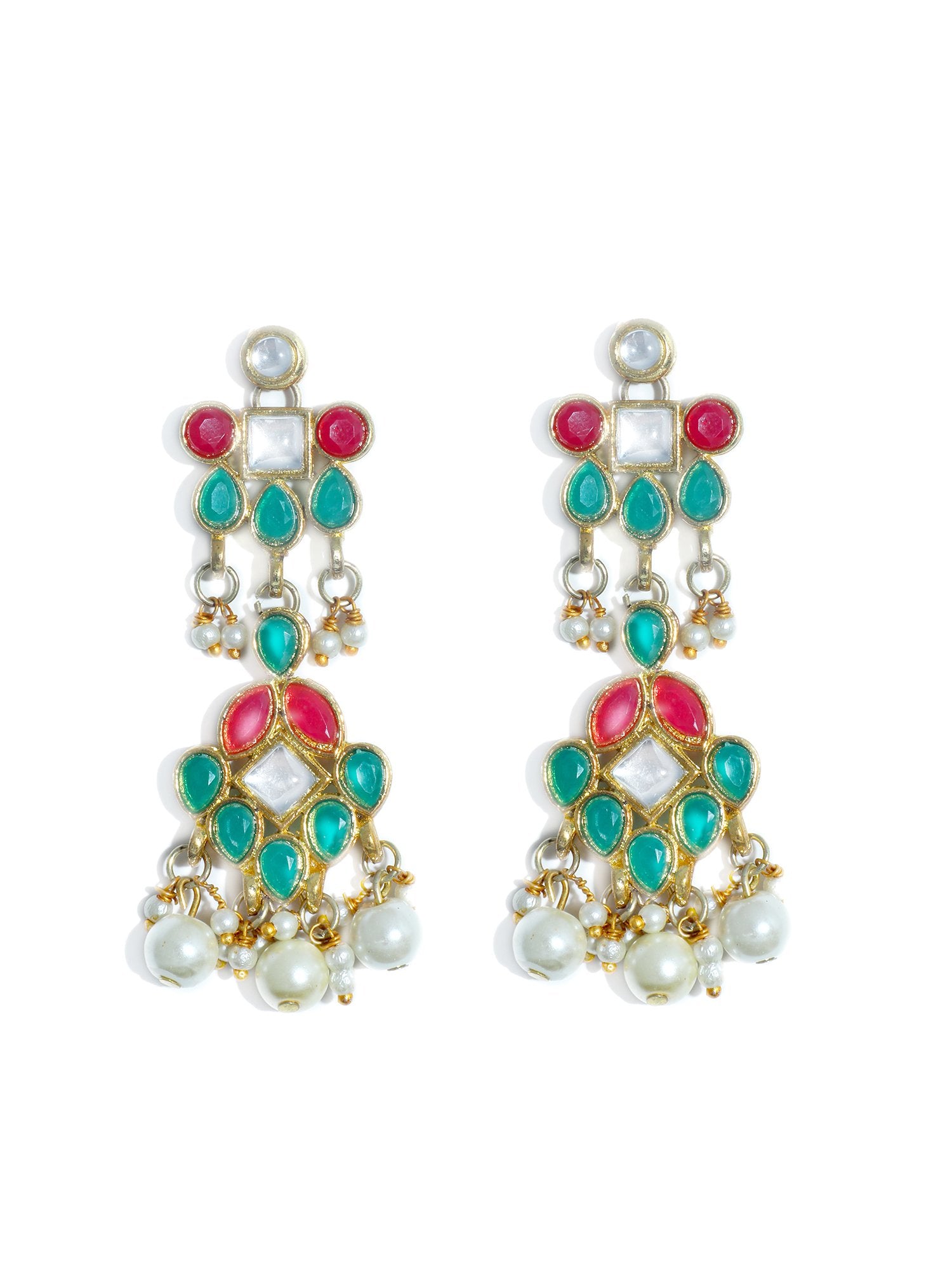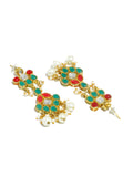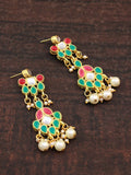Gold Plated Pearl Beads Red and Green Kundan Dangler Earrings for Women