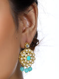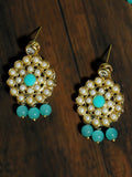 Gold Plated Mint Blue Beads Kundan Dangler Earrings for Women