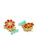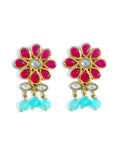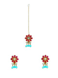 Gold Plated Blue Beads Red Kundan Dangler Earrings with Maangtikka for Women