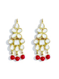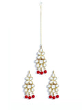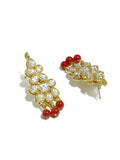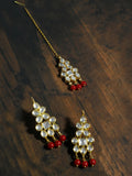 Gold Plated Red Beads Kundan Dangler Earrings with Maangtikka for Women