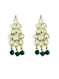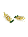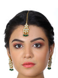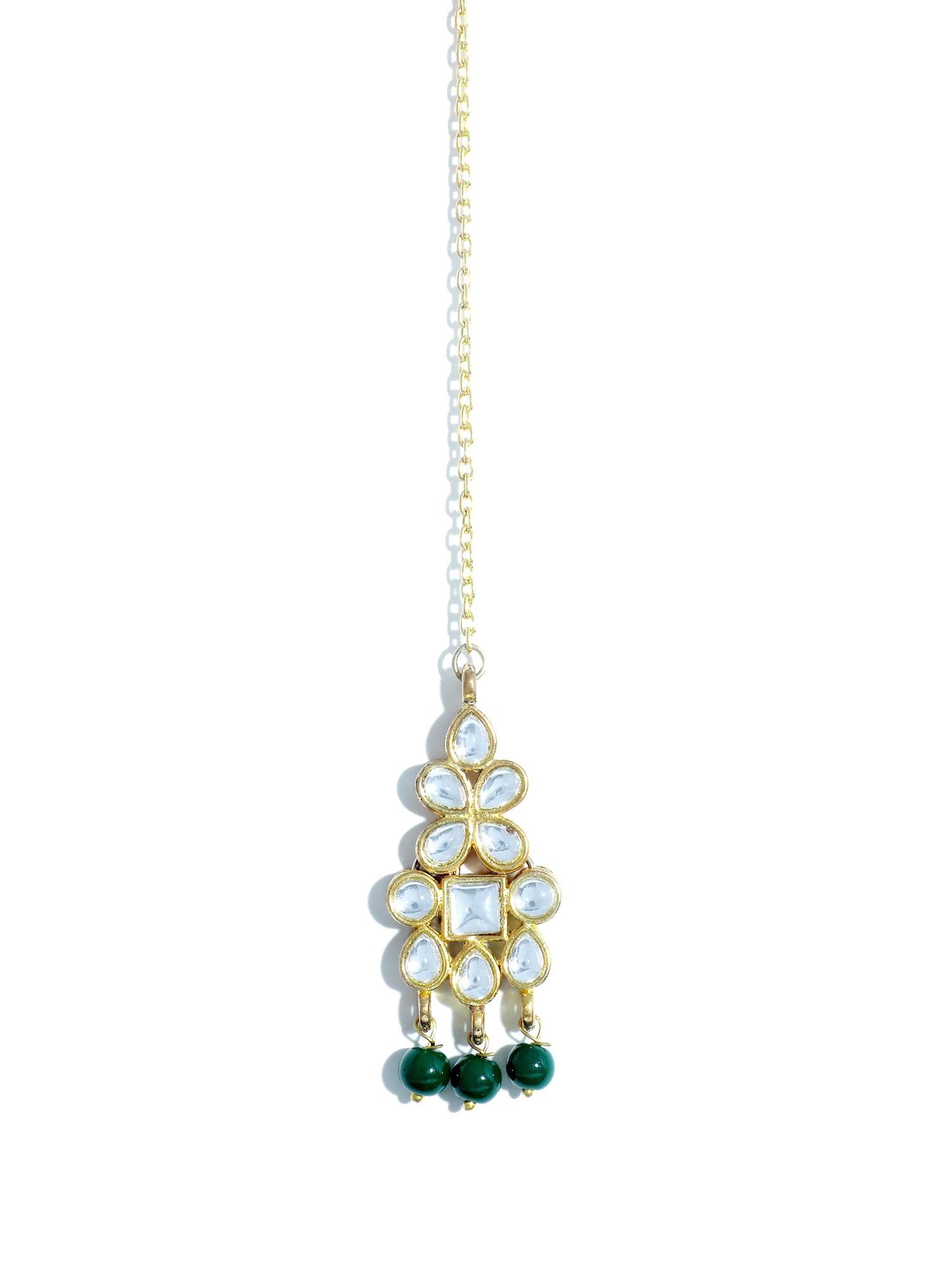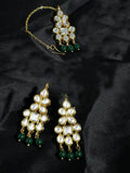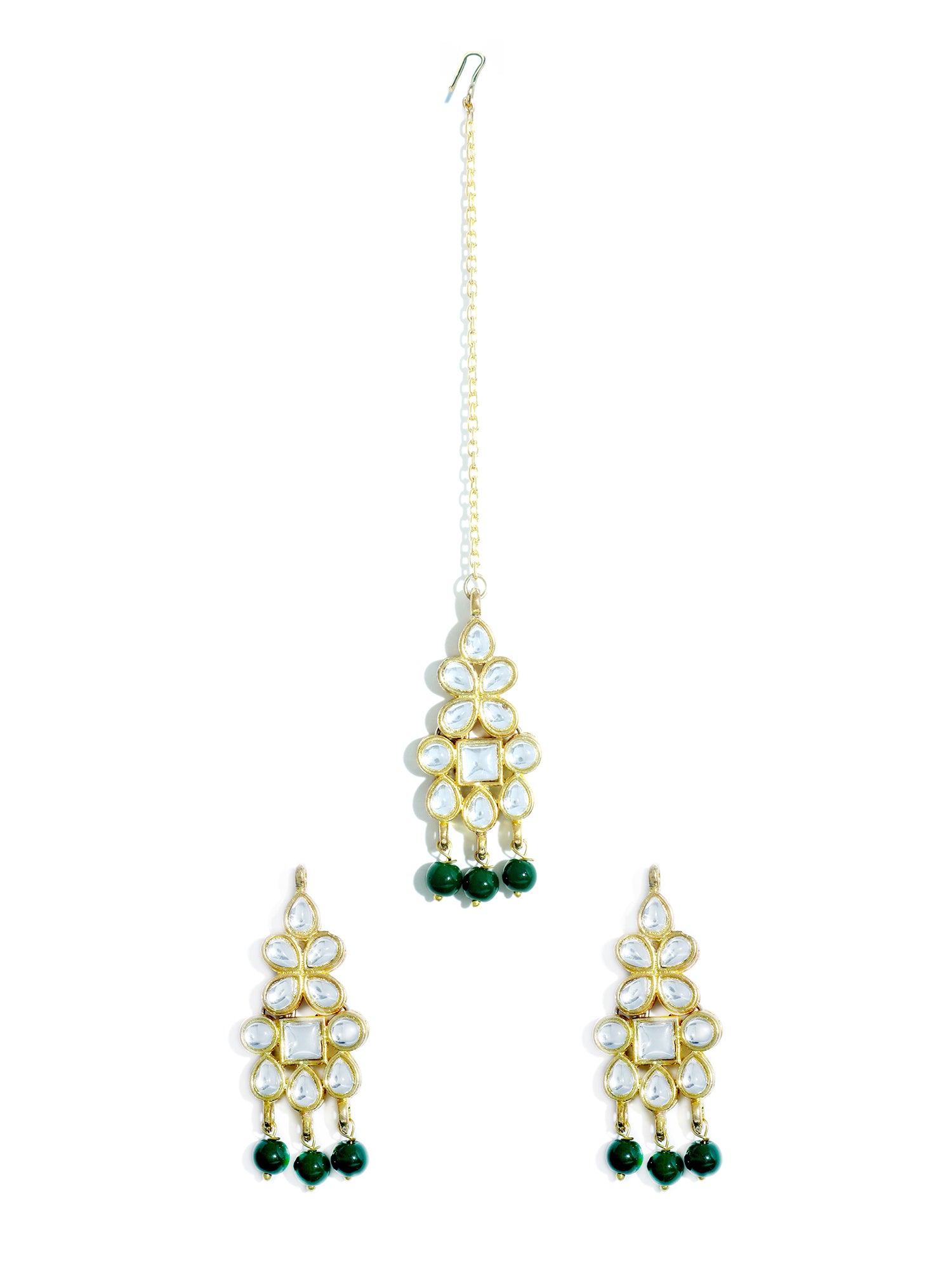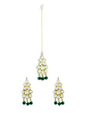 Gold Plated Green Beads Kundan Dangler Earrings with Maangtikka for Women